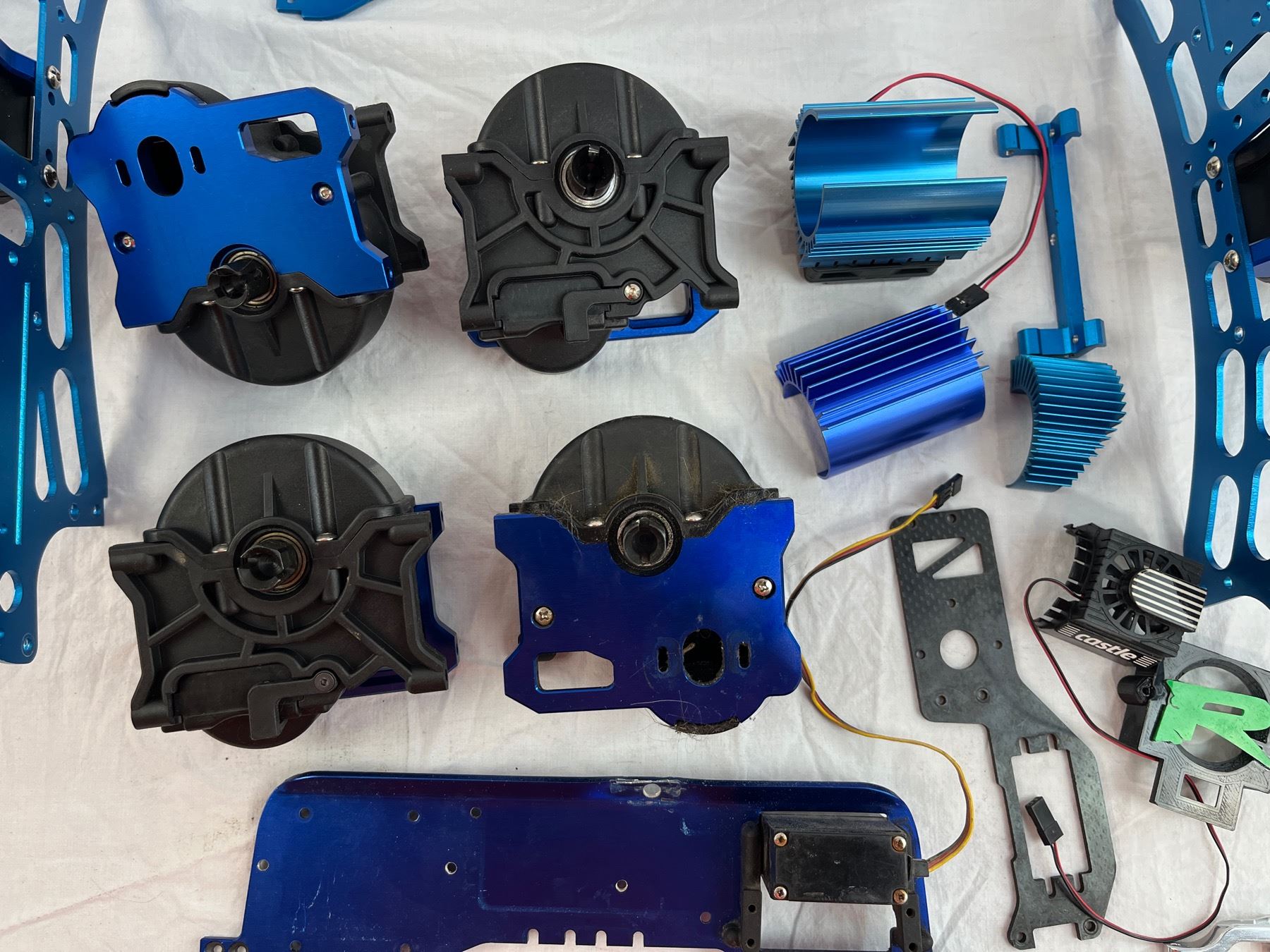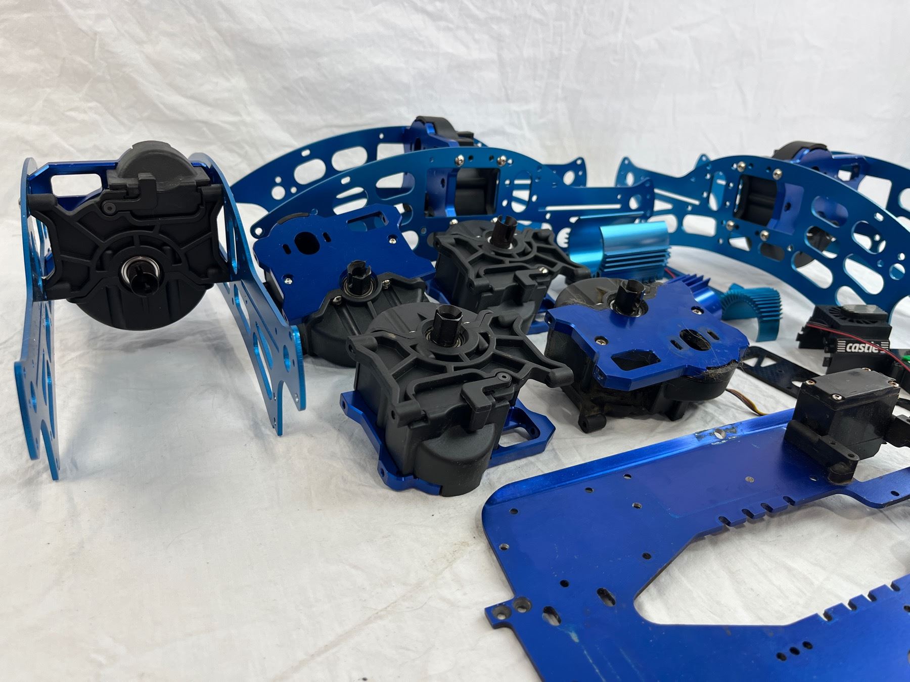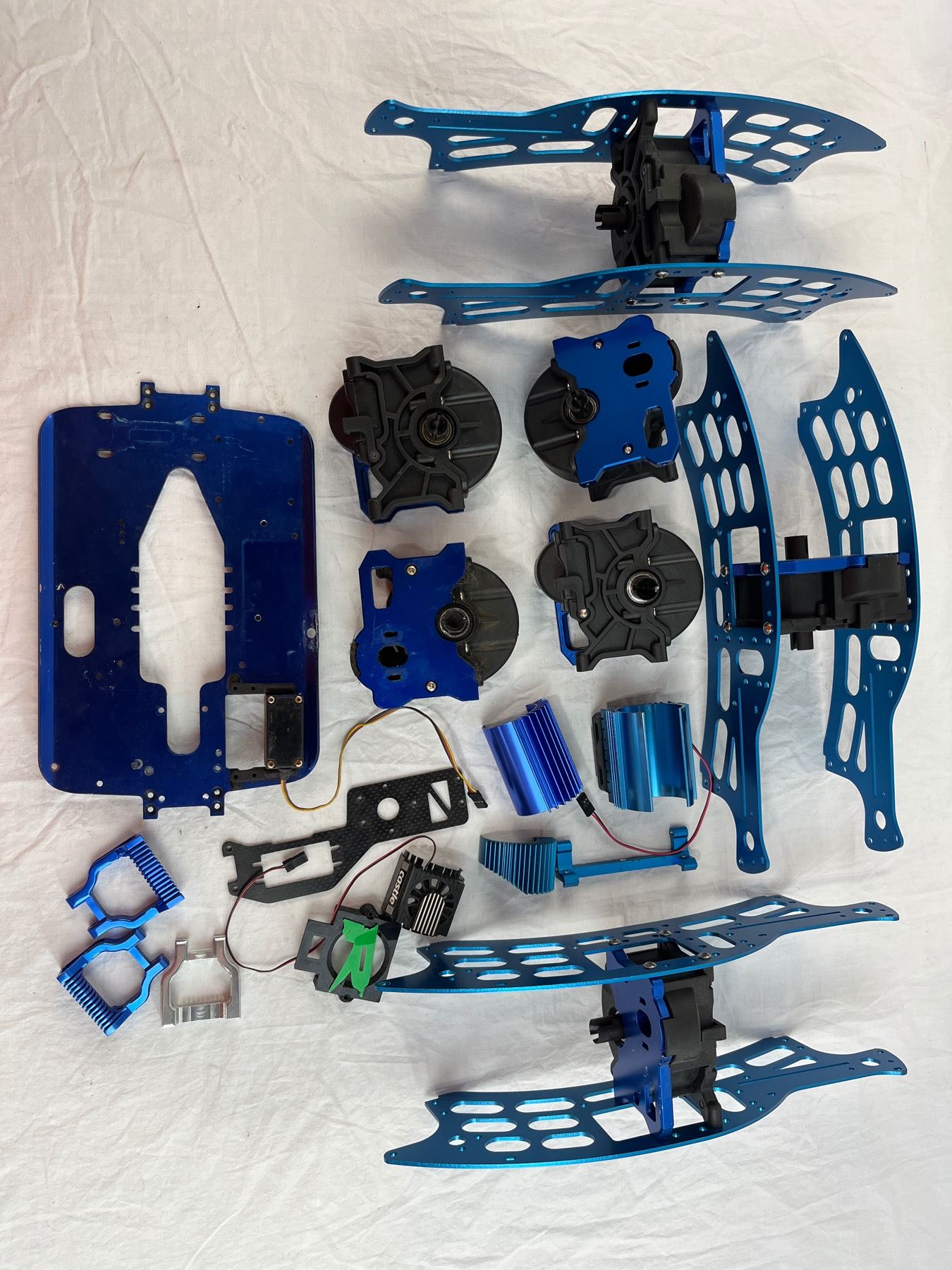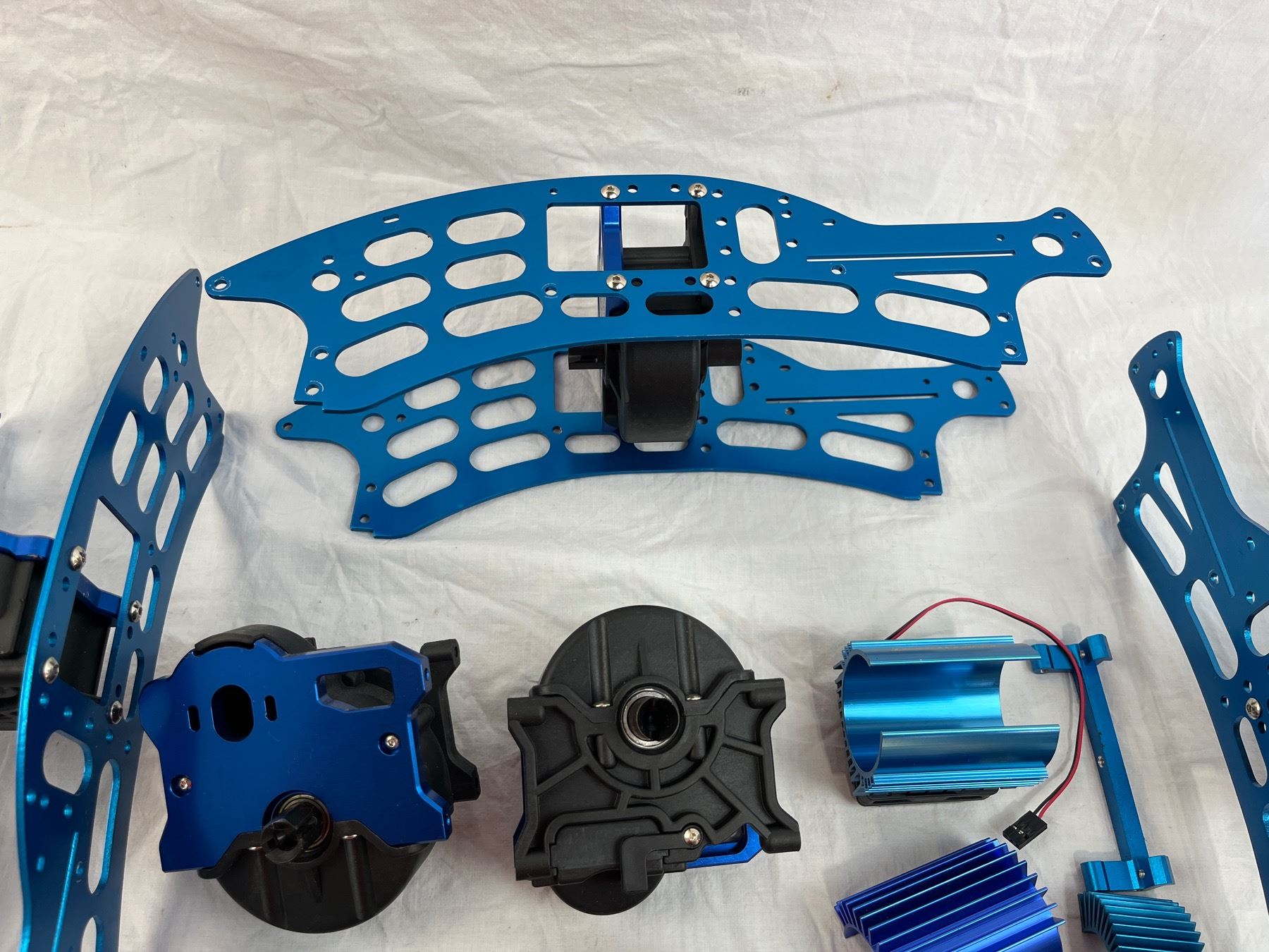 Blue aluminium with 6 chassis side plates one under plate and mixed other parts.