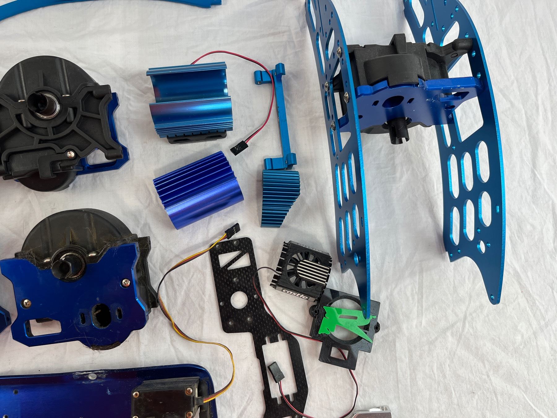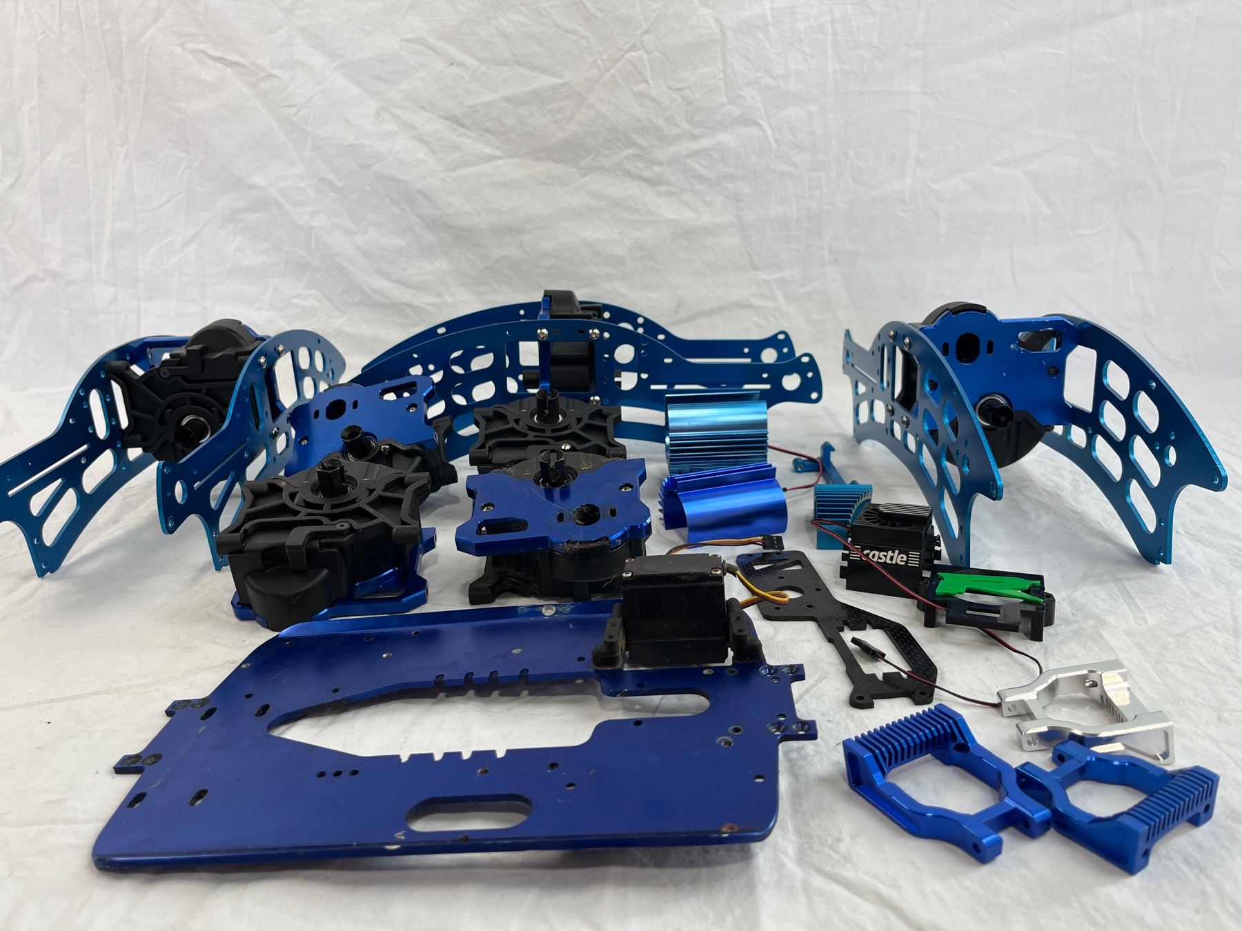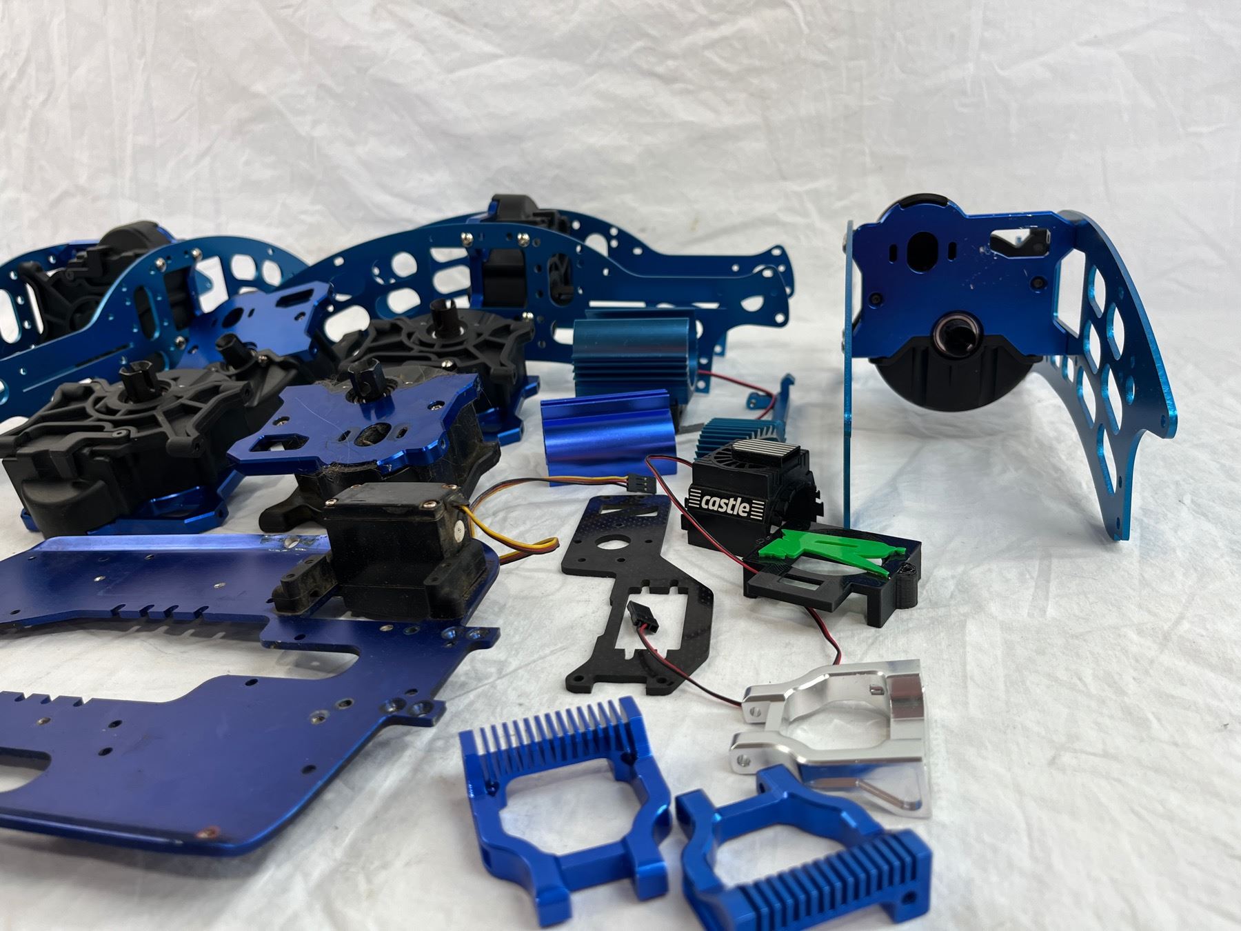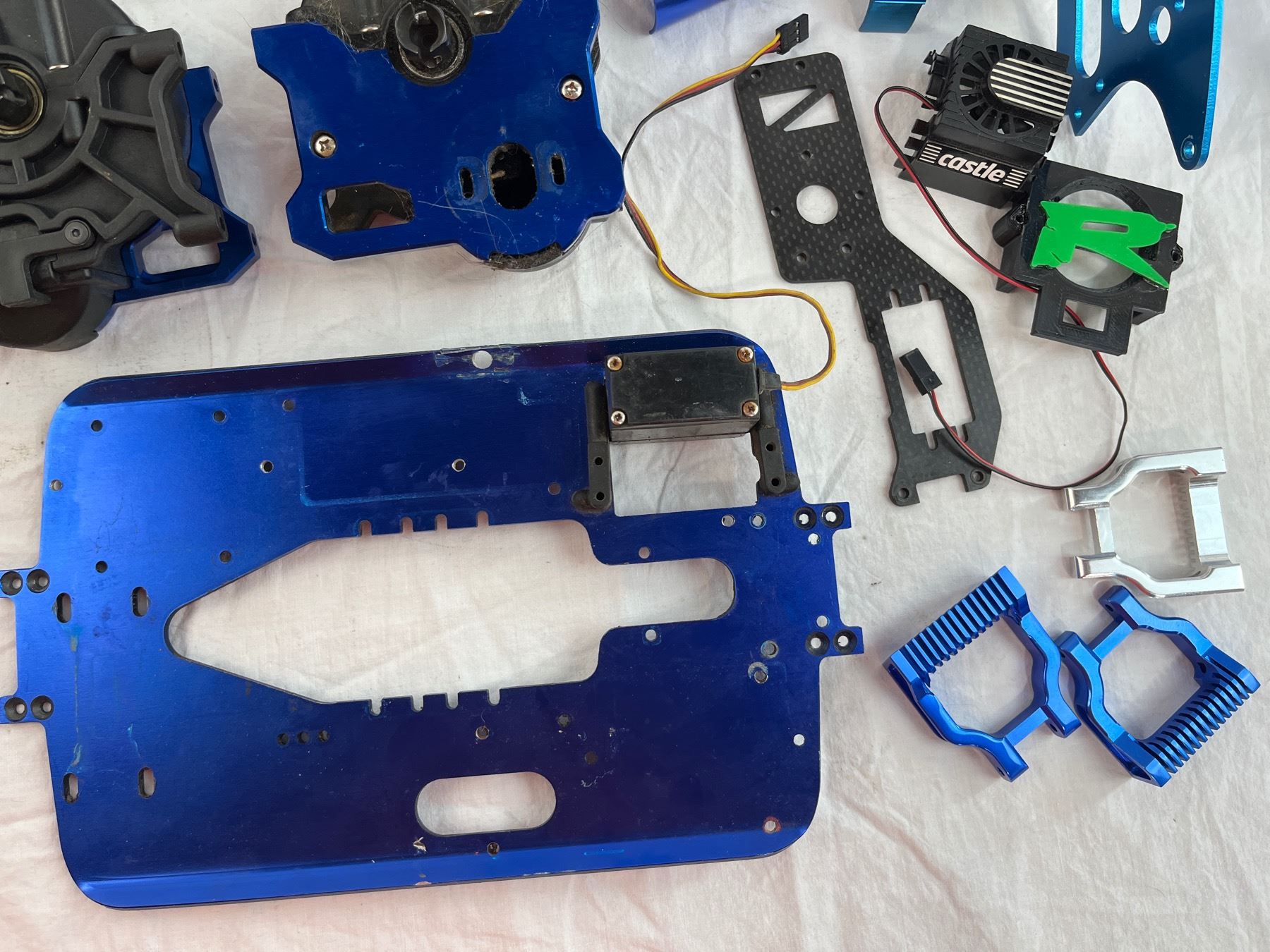 Blue aluminium with 6 chassis side plates one under plate and mixed other parts.