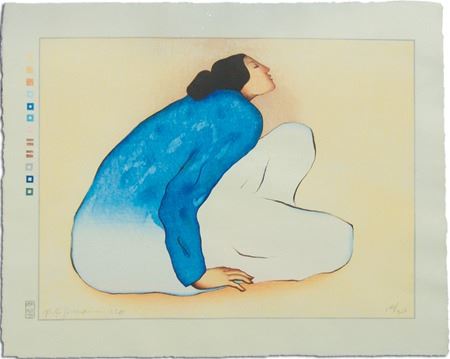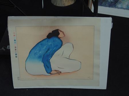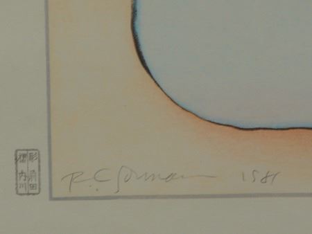 Ca. 1981, Rare signed limited edition (#148/210) Woodblock lithograph done on handmade Japanese paper tilted "Sora." Printed in Tokyo, Japan by Houston Fine Art Press. Matted and shrink wrapped. Very good condition. 19" x 23" unframed