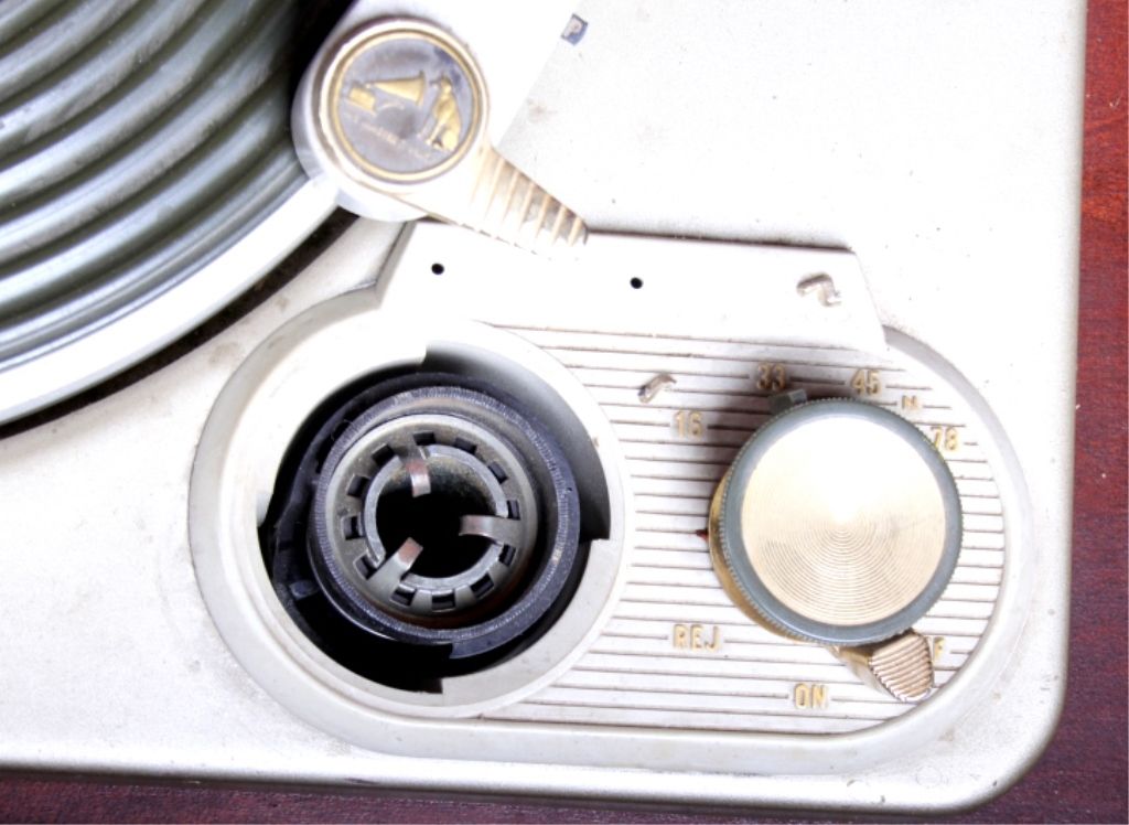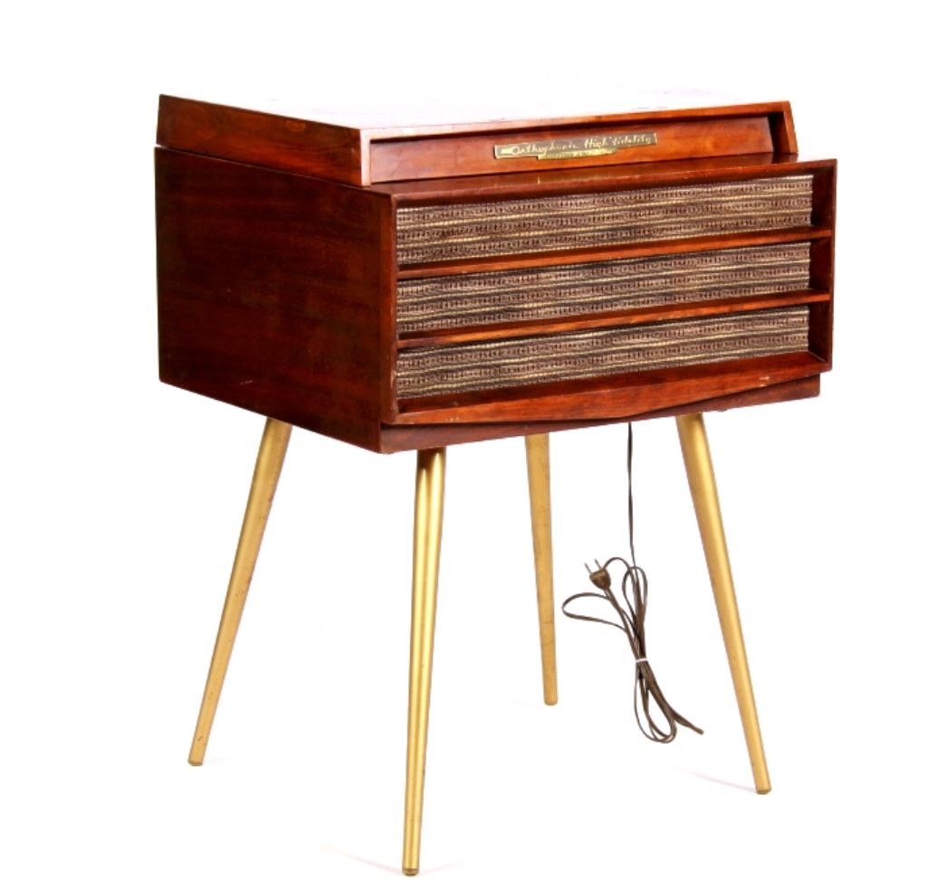 This lot features an RCA phonograph and cabinet. The cabinet is made of solid wood. The phonograph does work, but may need to be serviced with regard to the speed. It measures 20" x 19" and is 28" tall.