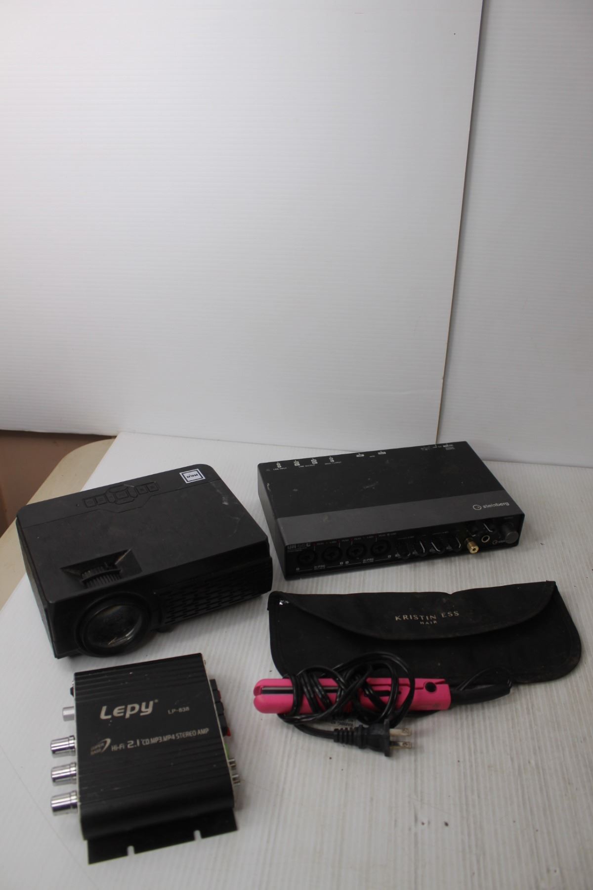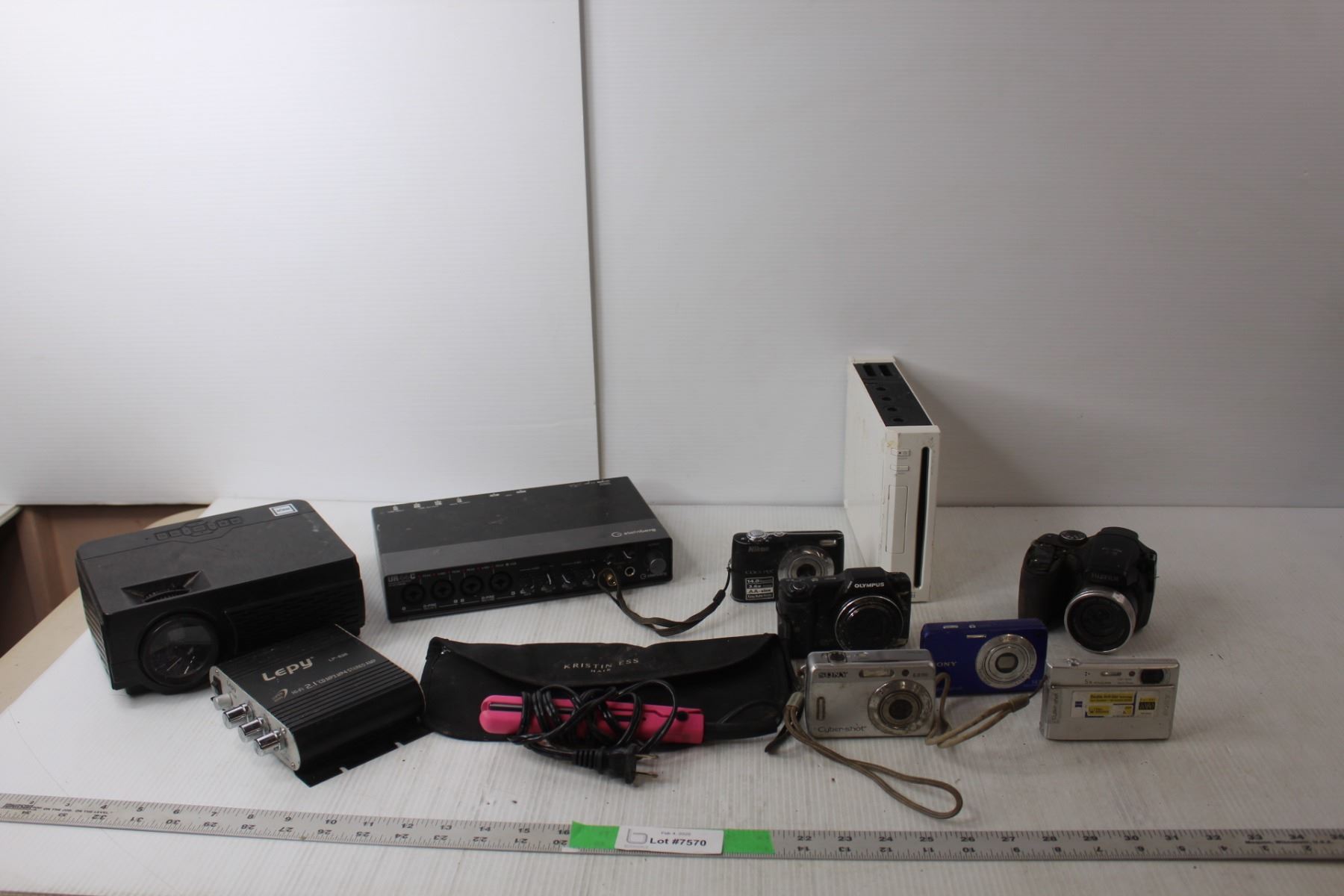 RCA Projector, (6) Digital Cameras, Steinberg Audio Interface, Nintendo Wii Console. Lepy Stereo Amp, Mini Hair Straightener, All As Is