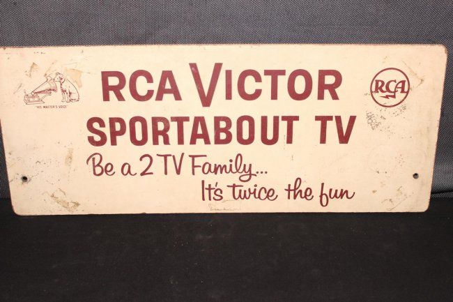 RCA VICTOR ADVERTISING SIGN ON BOARD - 29 X 11.5