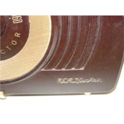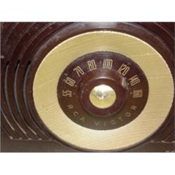 RCA VICTOR ART DECO RADIO. Marked "RCA Victor" at bottom right on front. Partial label on reverse. Not in working condition. 8.25" H, 12.25" W