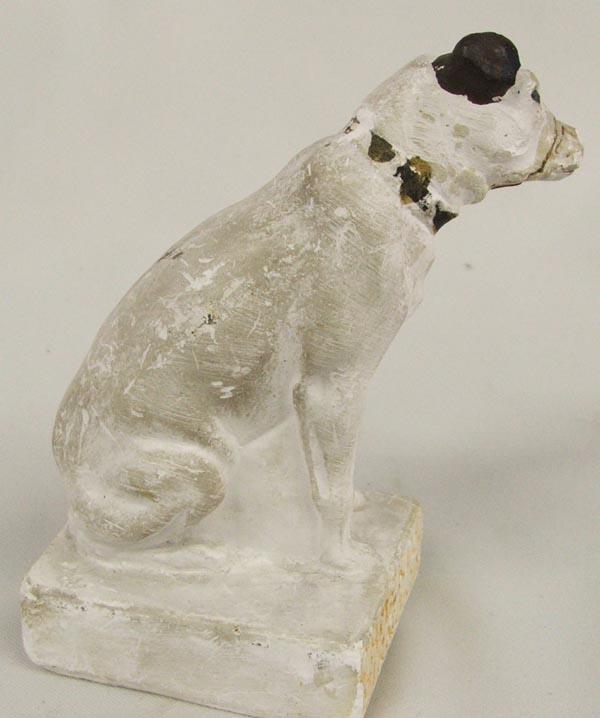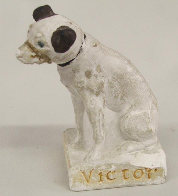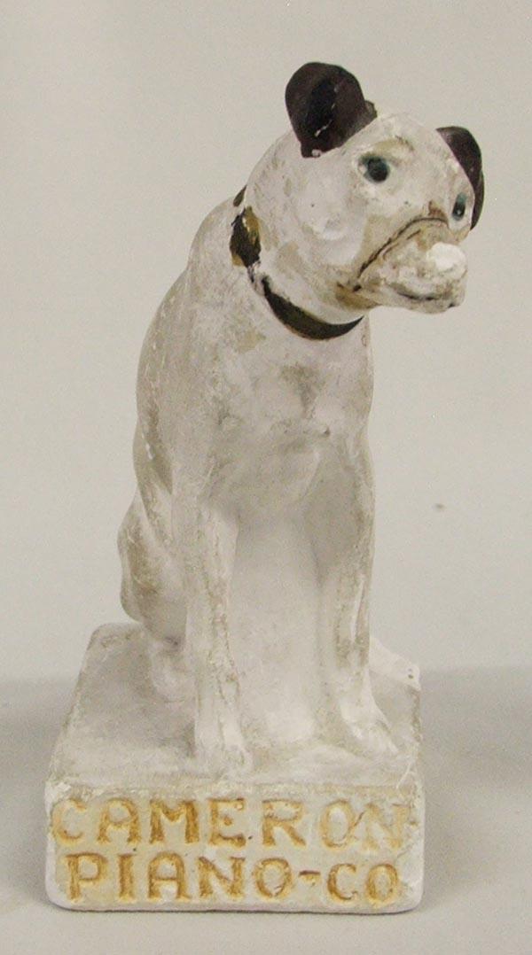 RCA Victor Chalkware Dog Advertising for Cameron Piano Co. Measures approx. 4''H x 2 1/4'' x 1 3/4''. Has been glued and does have a chip off base. Buyers Pay Actual Shipping and Handling Charges(see terms and conditions for more information).