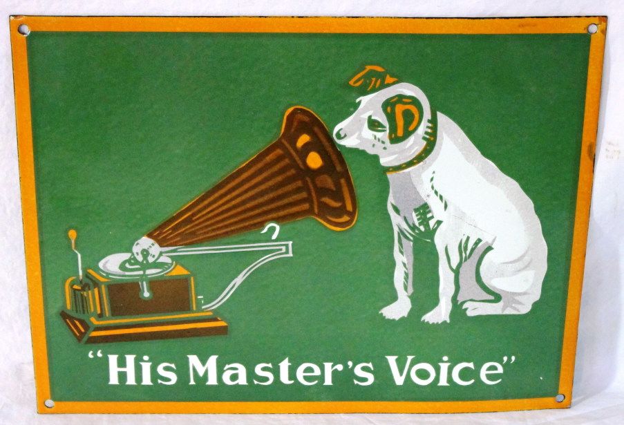 Single sided. 16" x 12". "His Master's Voice". Nice graphics.