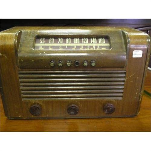 Great Buy! Antique RCA Victor AM/FM Radio has original label and appears to have original cord. On the back there is a record player connection and external antenna connection. Model 16X14, Serial No. B009444.