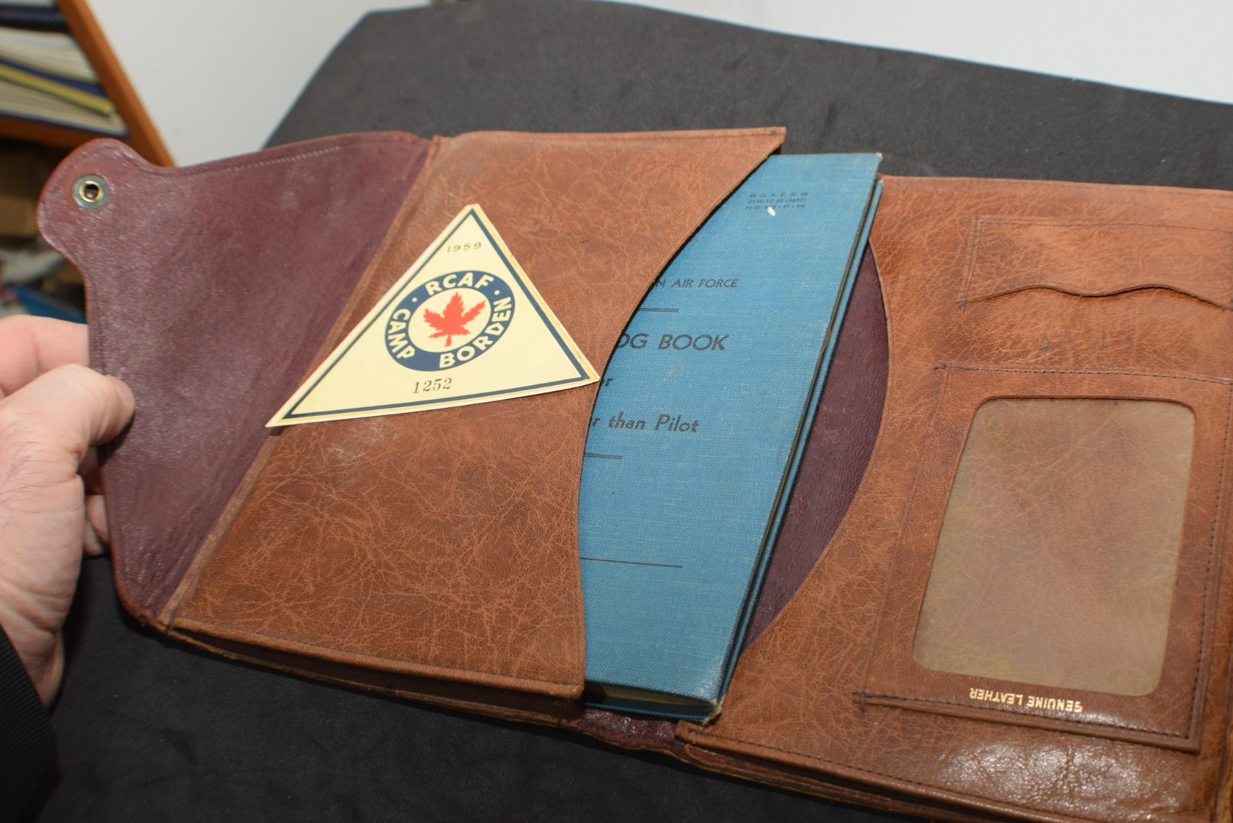 RCAF LOG BOOK , LEATHER BINDER , DECAL