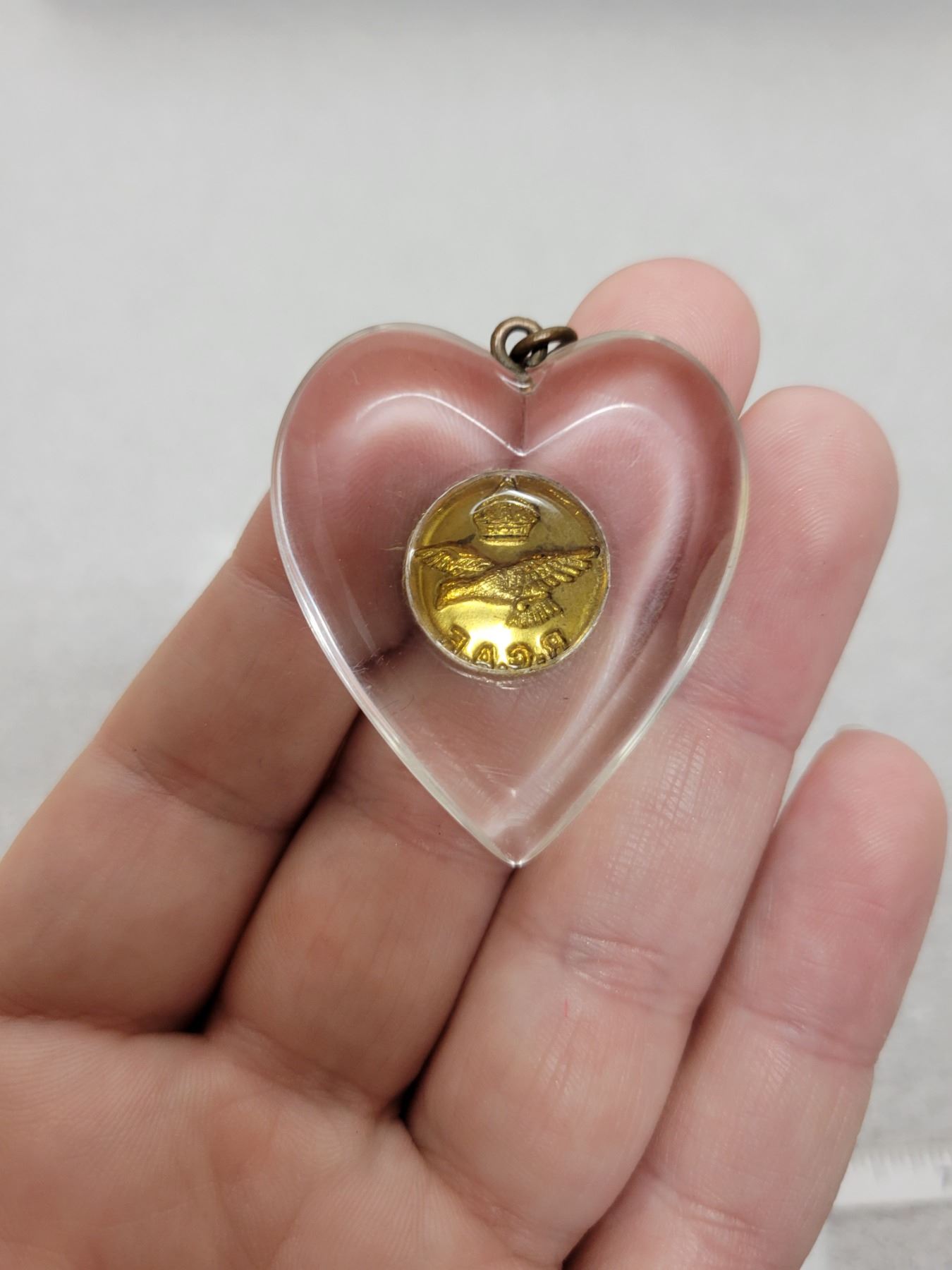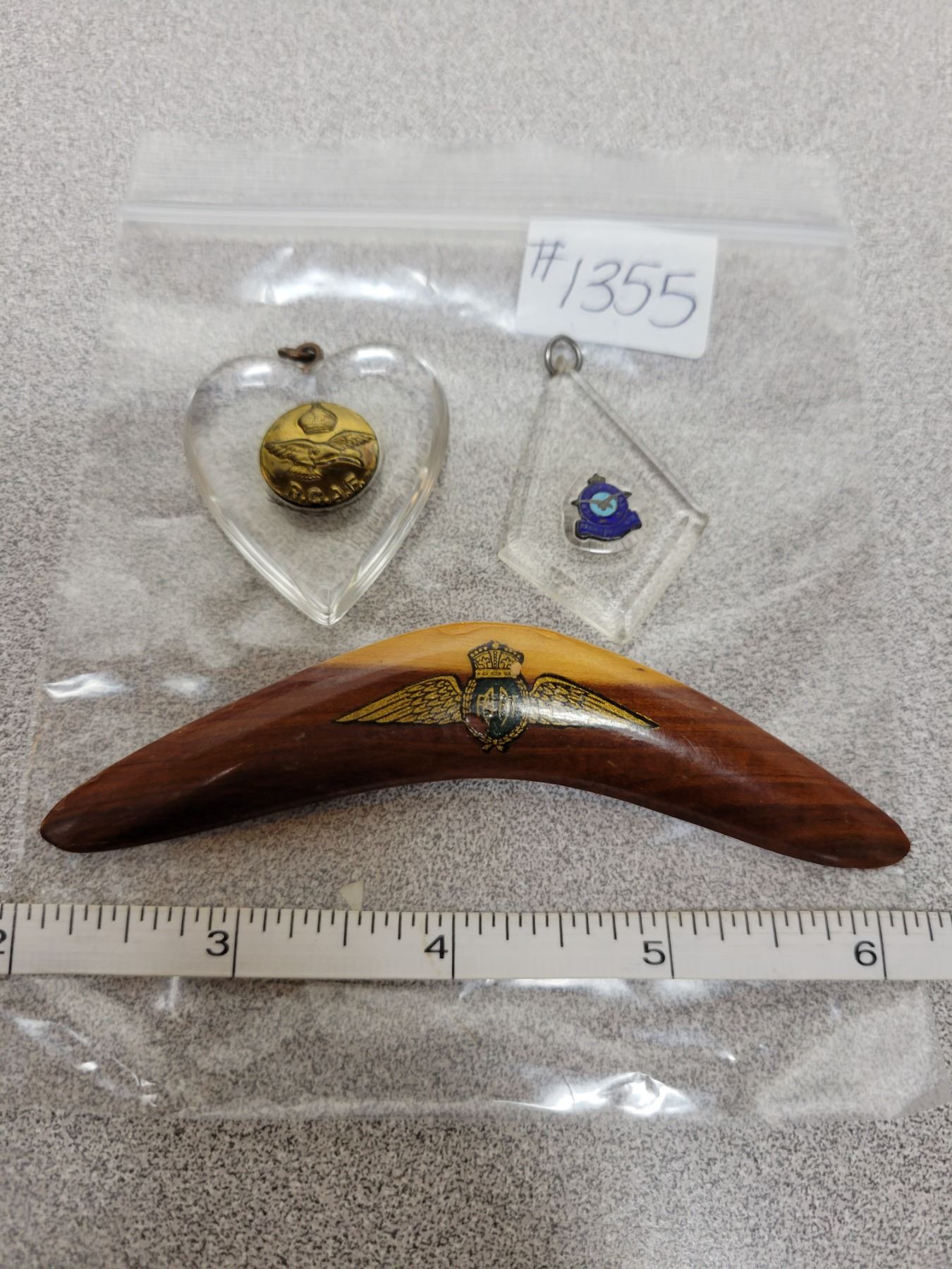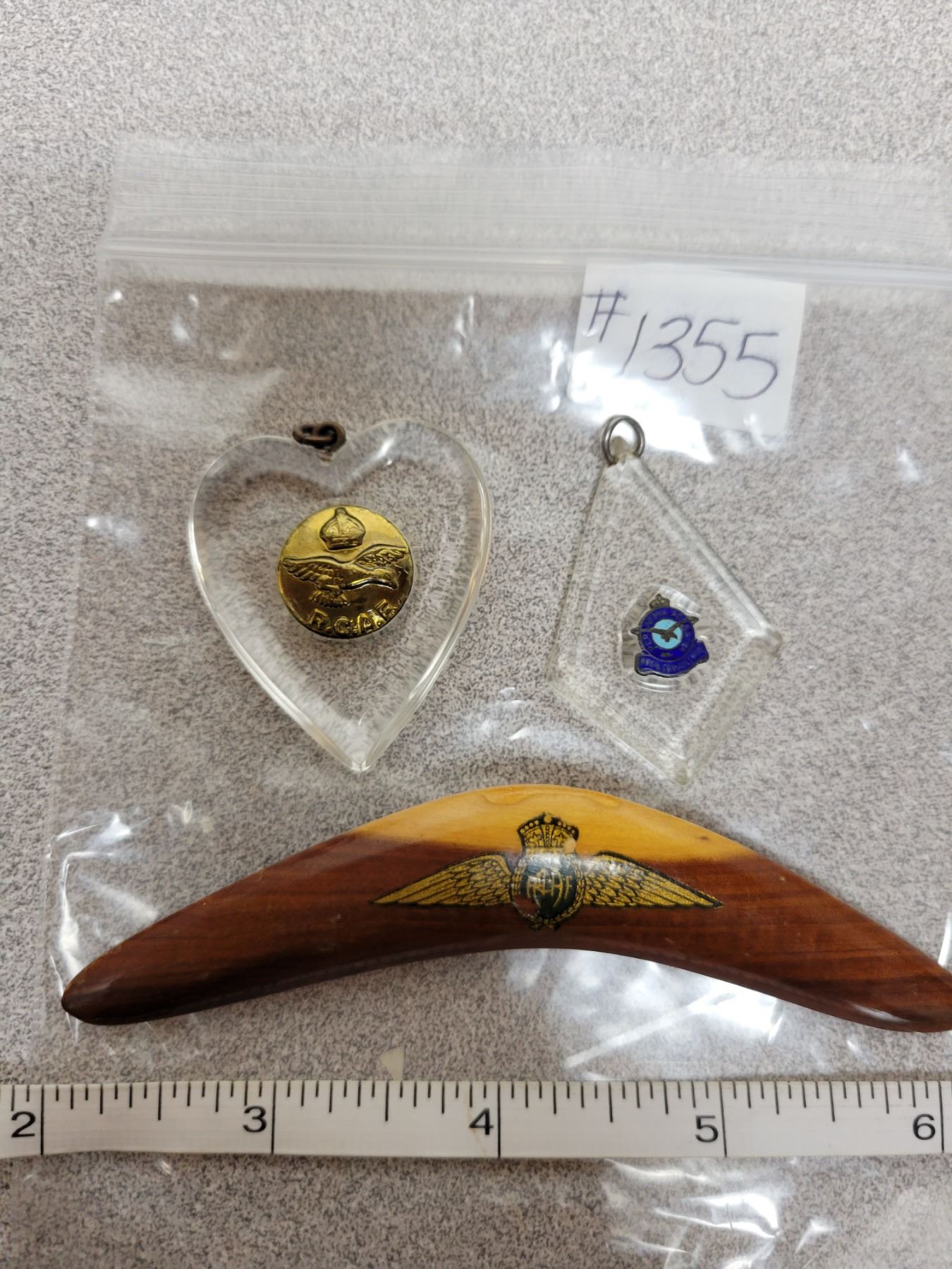 RCAF sweetheart broach and two lucite and silver RCAF sweetheart pendants