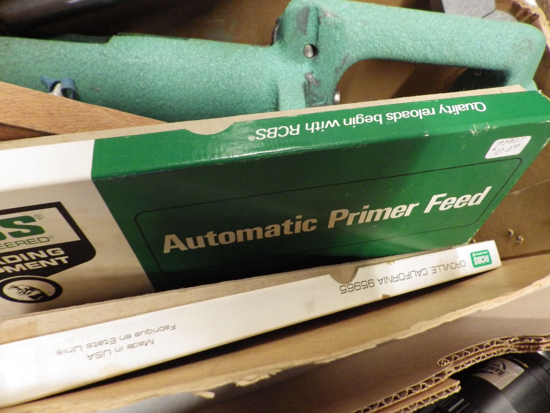 RCBS JR2. Hand loader, 2) automatic primer feeds & misc.