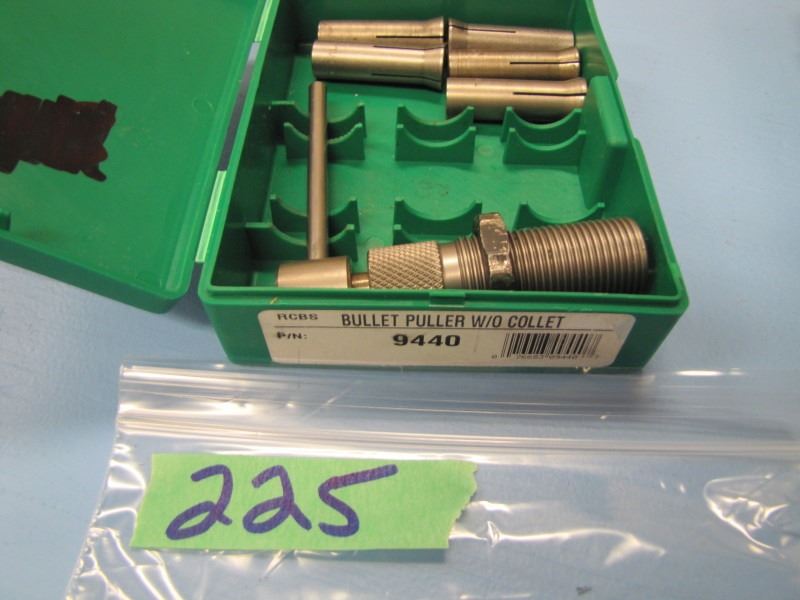 RCBS bullet puller with collets -- they are 25 cal, 22 cal x 2, 30 cal x 2.