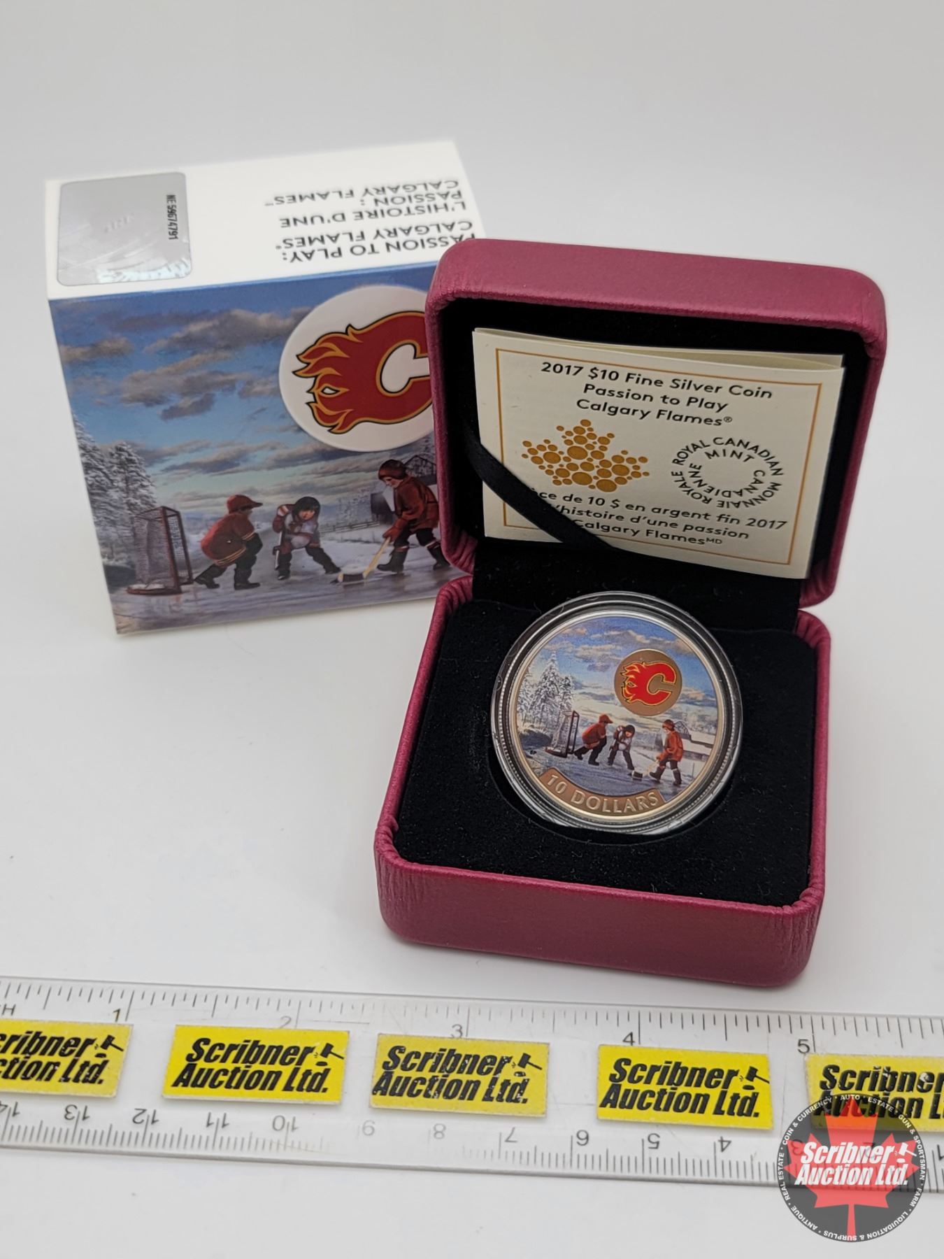 RCM $10 Fine Silver Coin : Passion to Play : Calgary Flames (COA 99.99%) (SEE PICS!)
