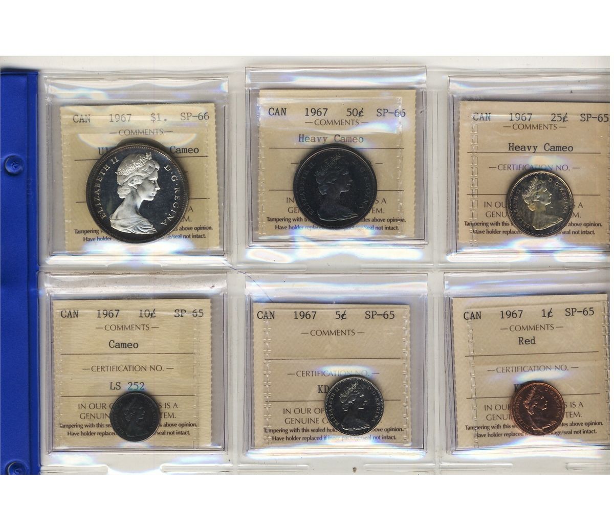 RCM, 1967 Specimen Set all graded ICCS graded SP65-SP66 with Cameo to Heavy Cameo designations.
