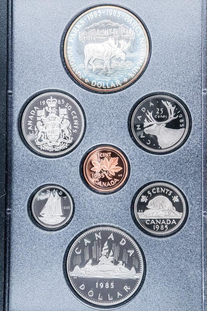RCM 1985 Proof Coin Set w/ Silver Dollar Leather Case-22555