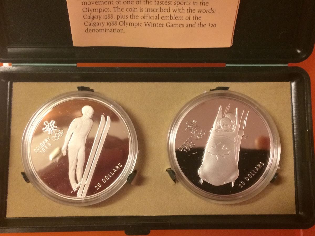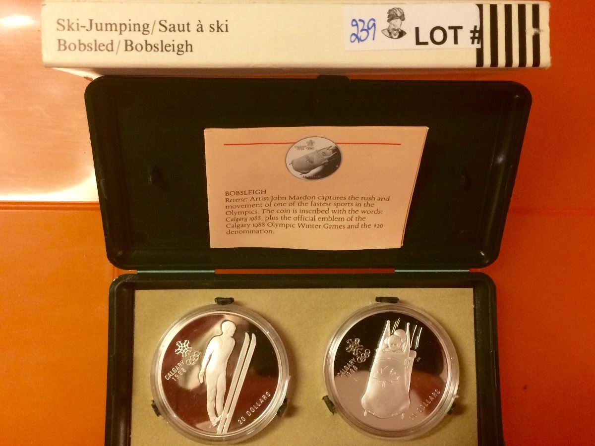RCM: 1986 $20 Proof XV Olympic Winter Games, Set of Two Sterling Coin. Ski Jumping & Bobsleigh