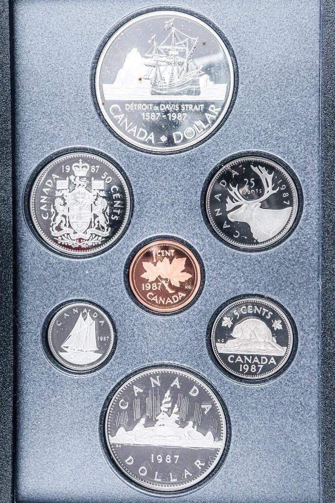 RCM 1987 Proof Coin Set w/ Silver Dollar Leather Case-22557