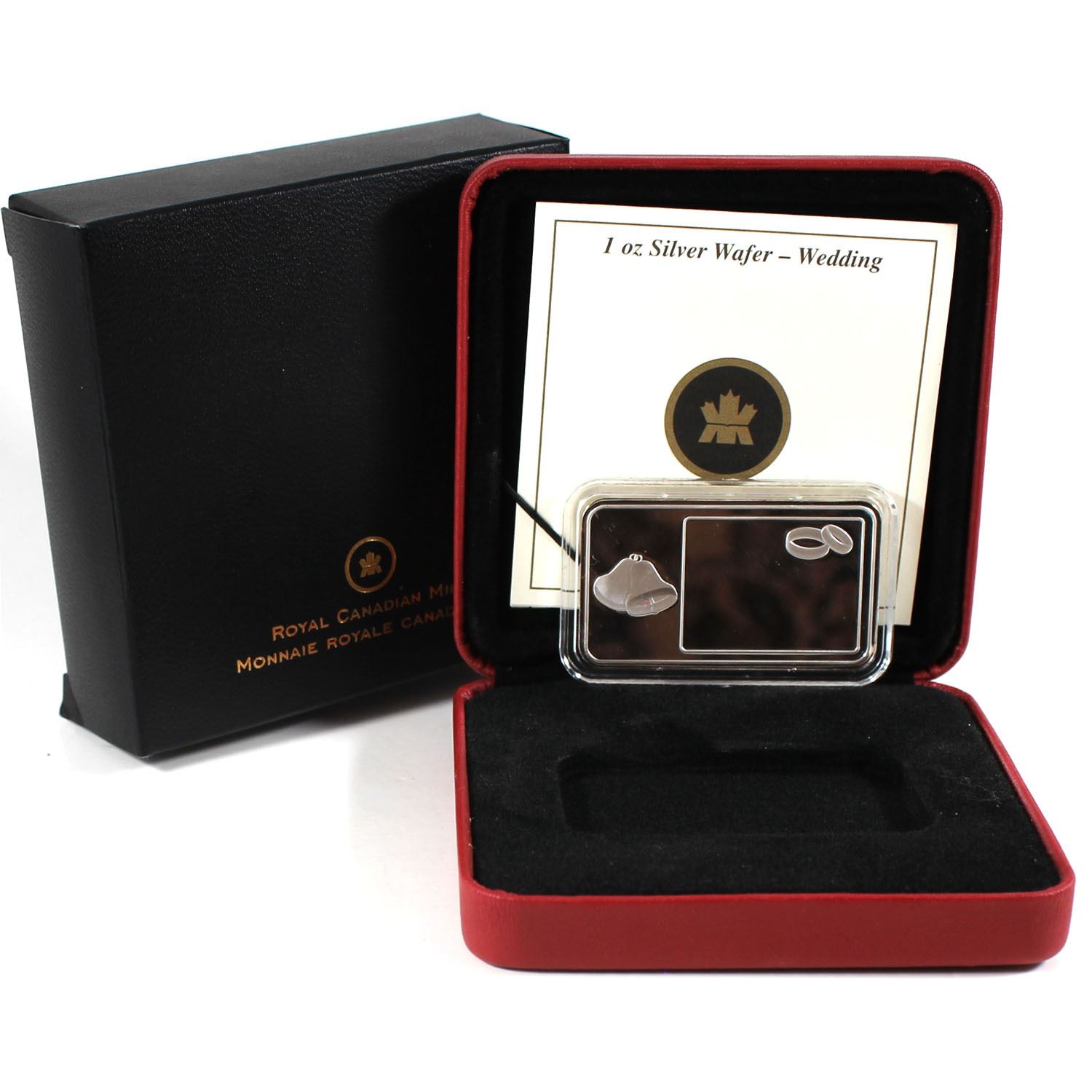 RCM 1oz Wedding Engravable Fine Silver Wafer (capsule lightly scratched). TAX Exempt. Issued by the Royal Canadian Mint