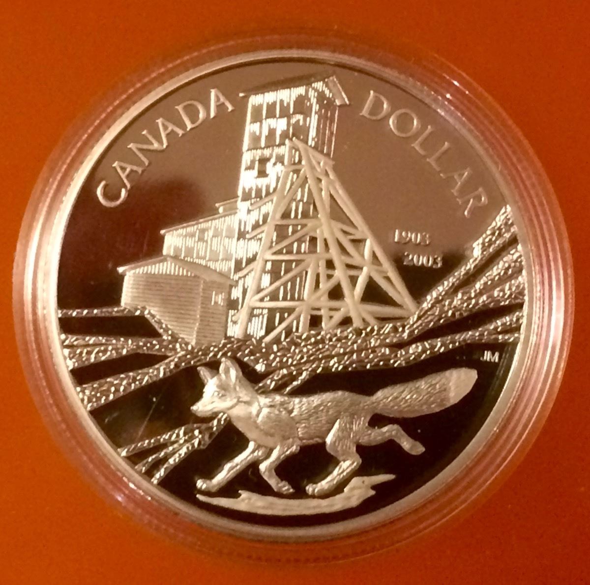 RCM: 2003 Proof Dollar--.999 Silver-100th ann, cobalt, C.O.A. Sleeve & Box