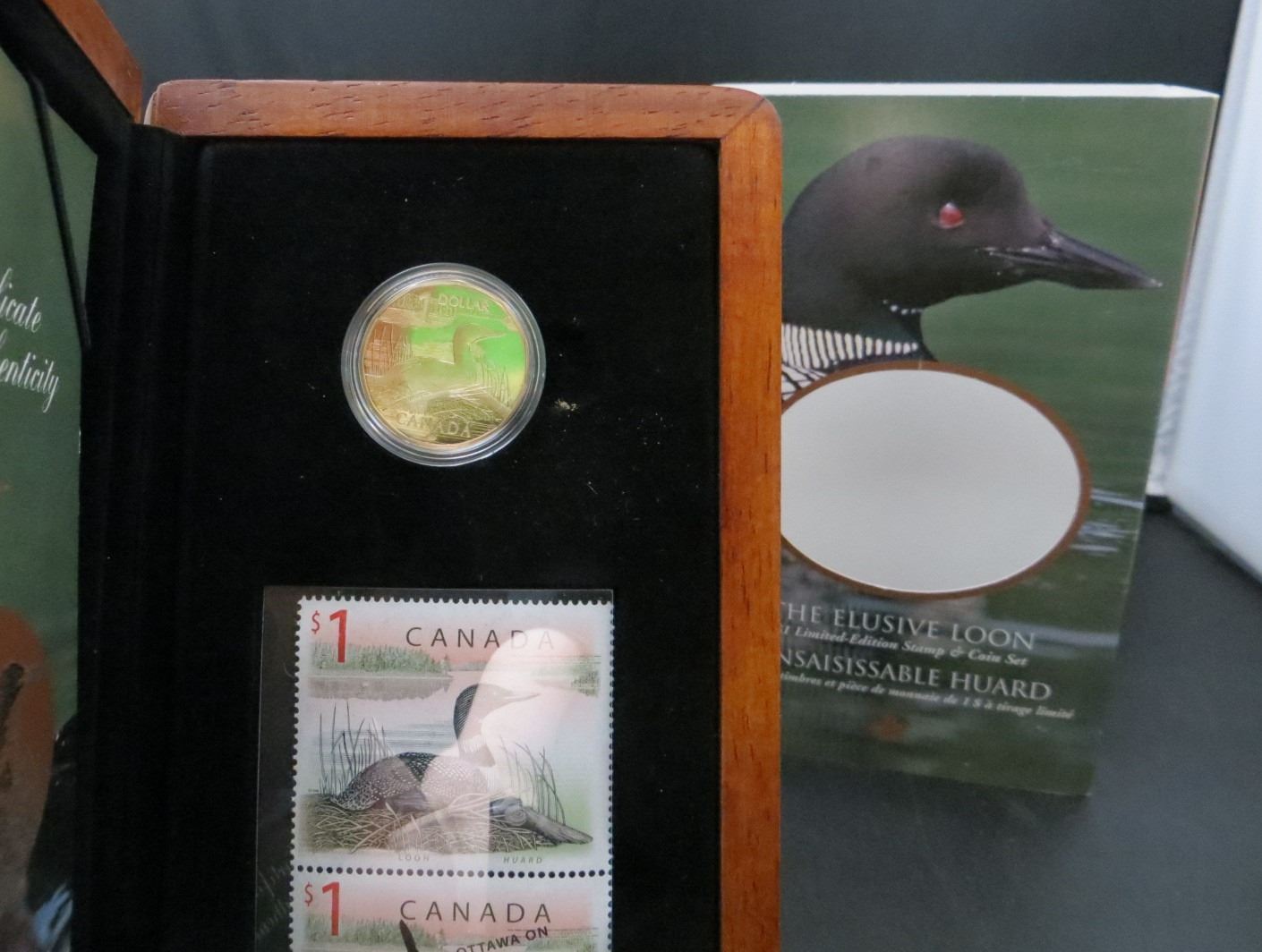 RCM 2004 $1 Elusive Loon Limited-Edition Coin & Stamp Set In Wood Case