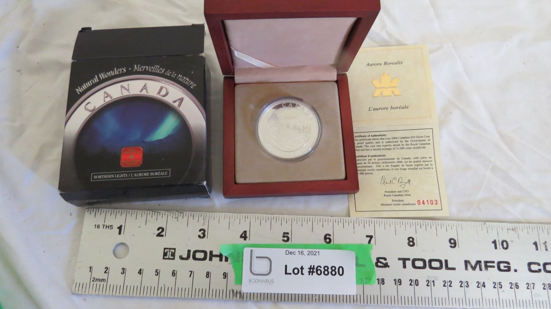 RCM -2004- $20 Canadian Silver Dollar - Northern Lights