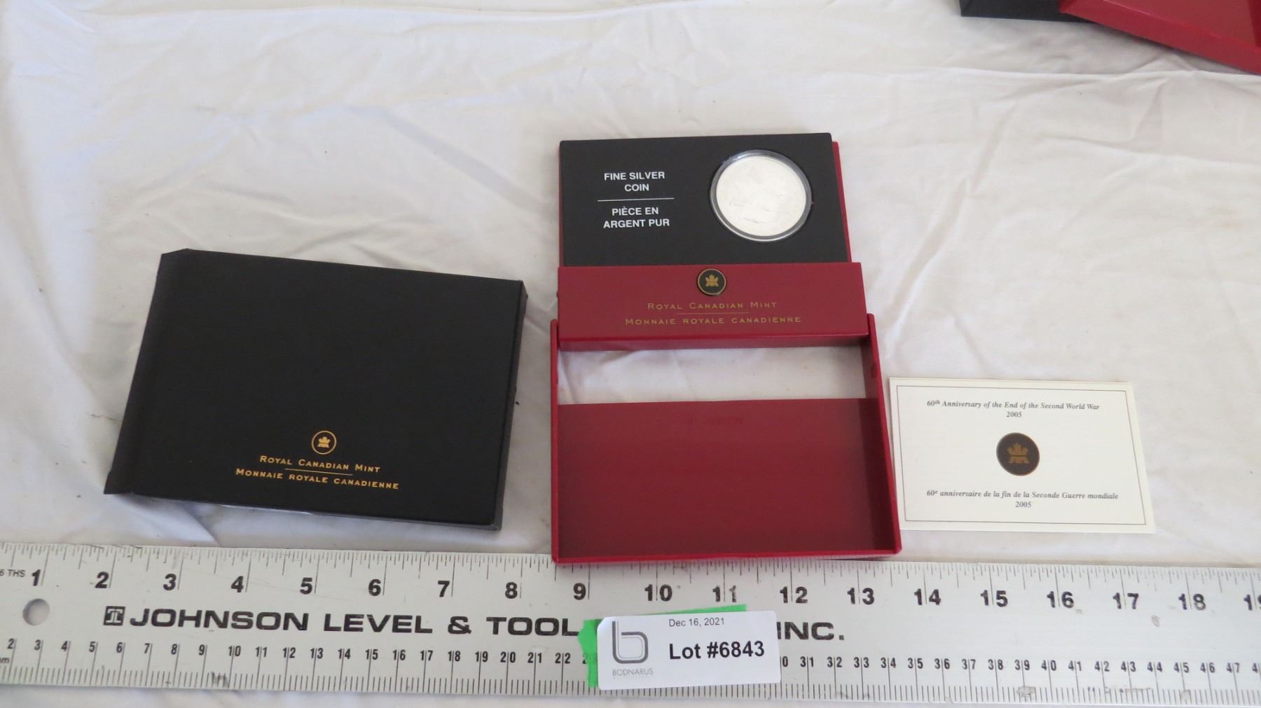 RCM -2005- 60th anniv of end of WWII $5 fine silver coin in case