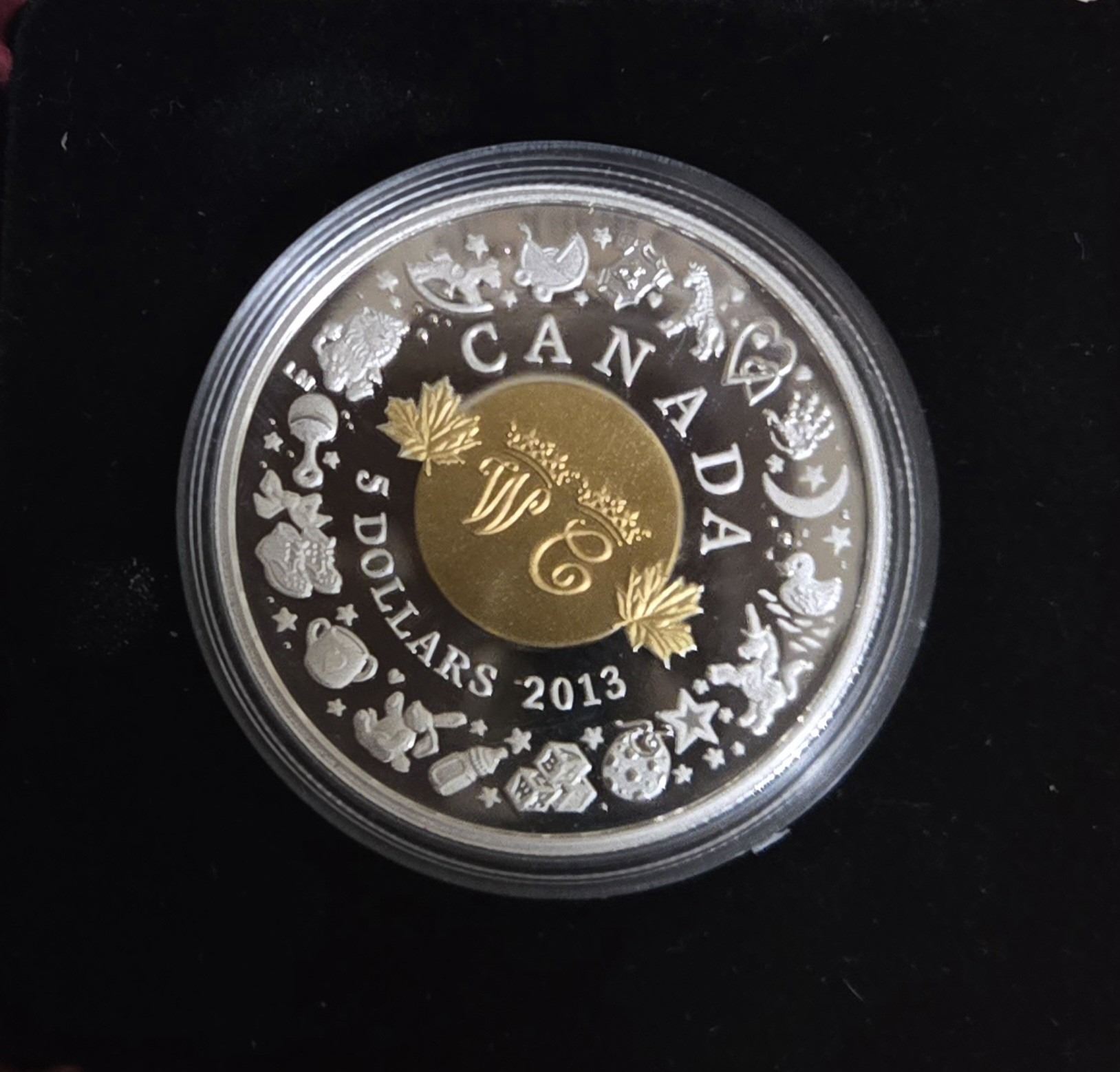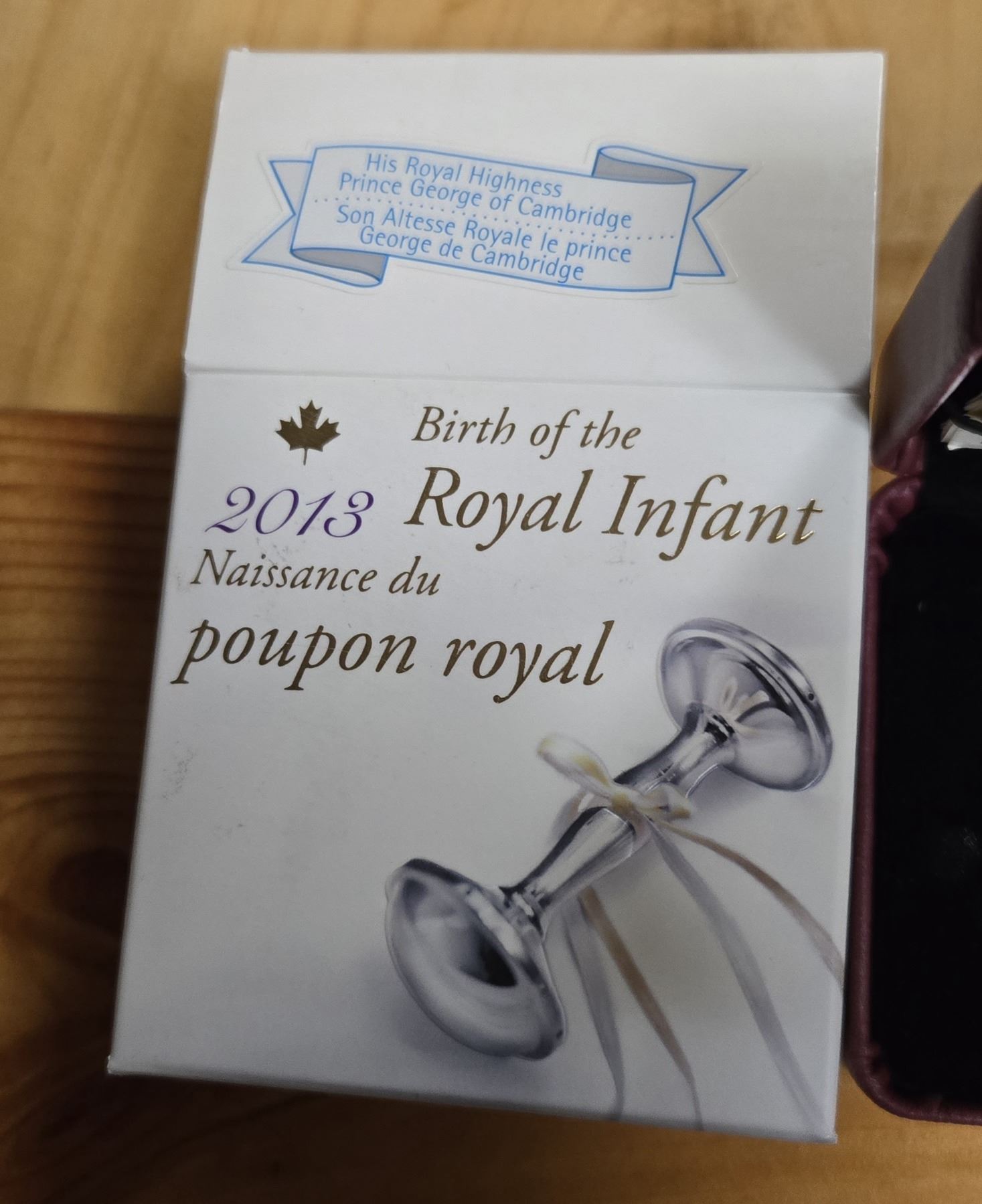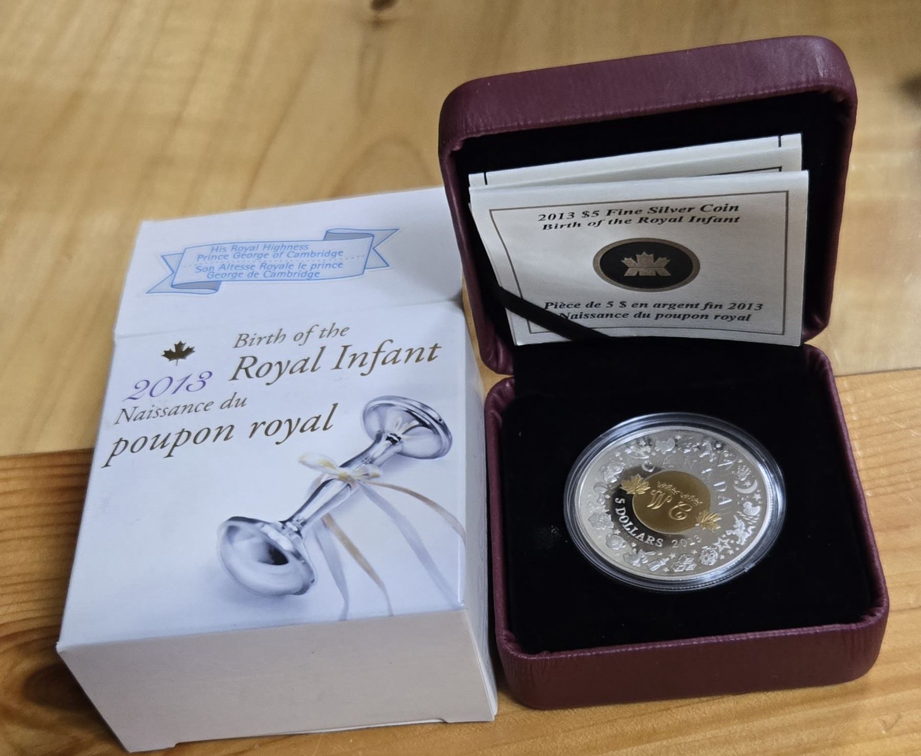 RCM 2013 Fine Silver “Birth of the Royal Infant” Coin. Uncirculated coin weighs 23.17 grams and has a diameter of 36.07 millimetres.