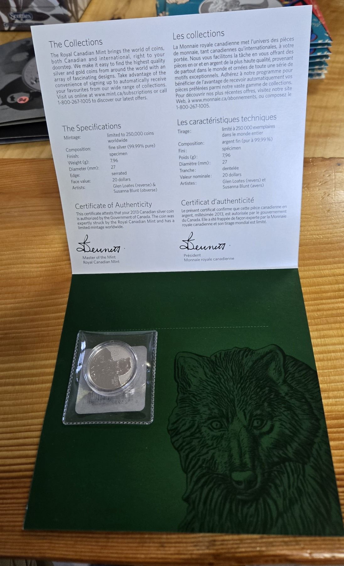 RCM 2013 Fine Silver “Wolf” Coin. Unopened and uncirculated.