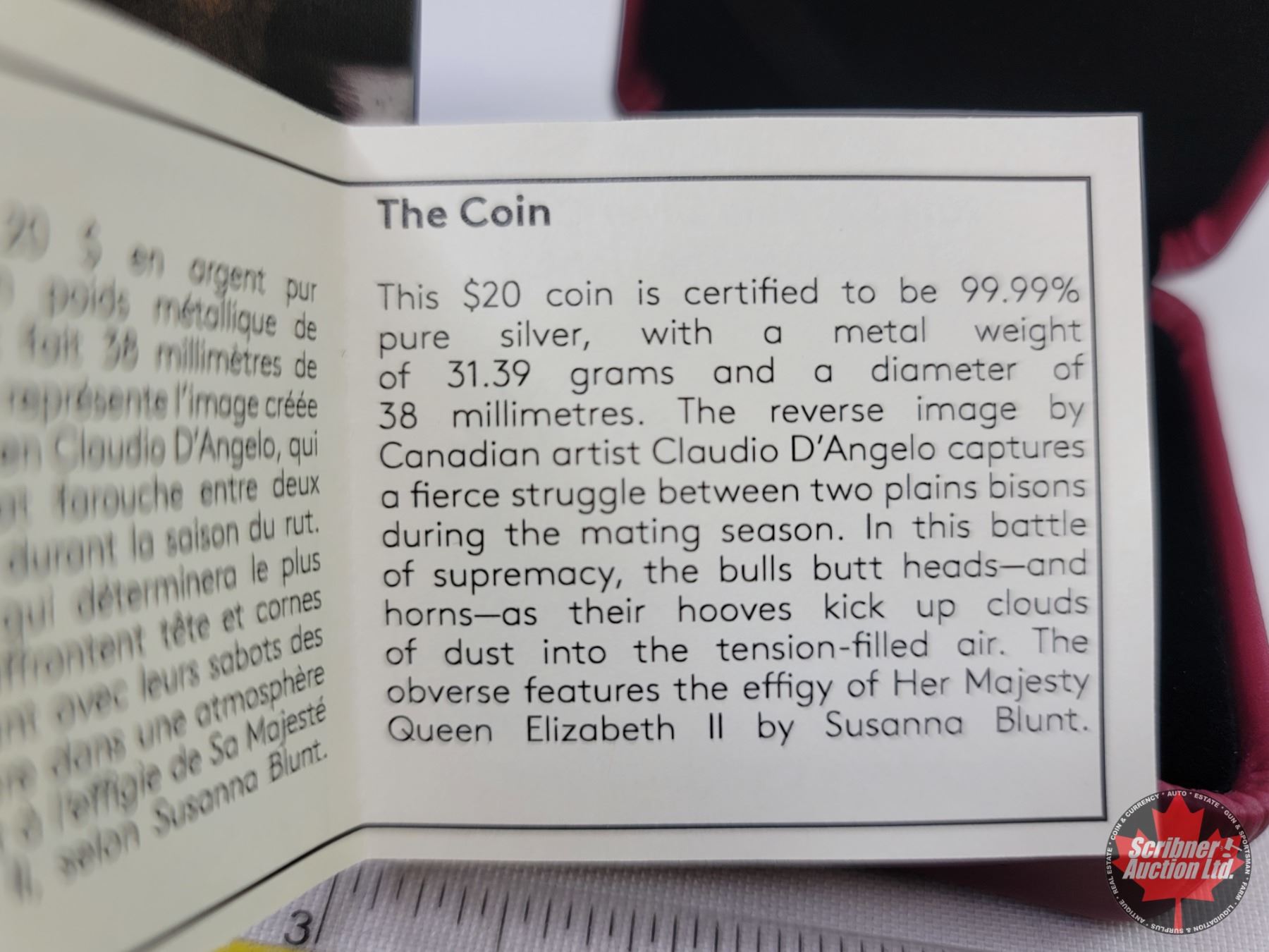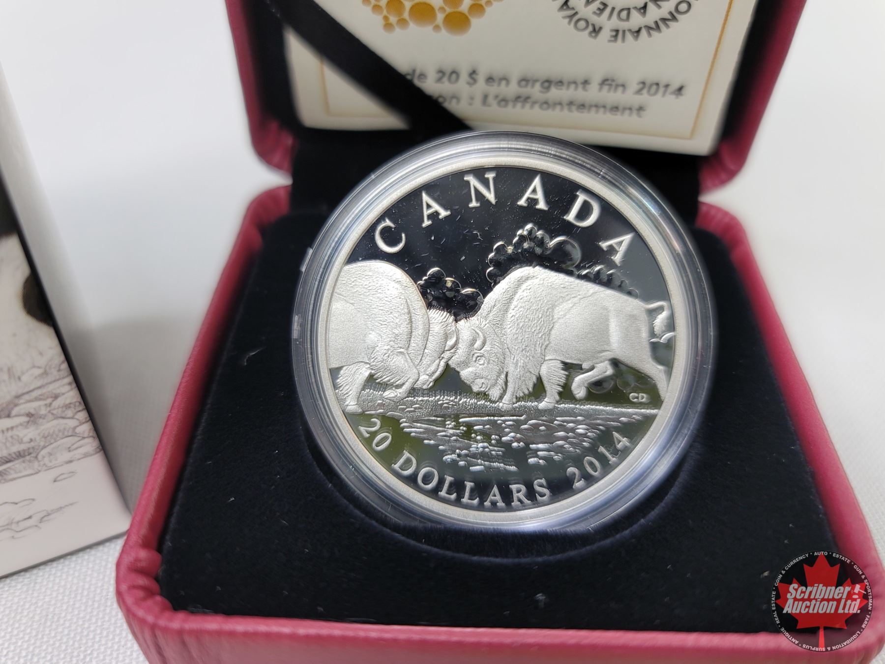 RCM 2014 $20 Fine Silver Coin ~ The Bison : The Fight (99.99) (SEE PICS!)