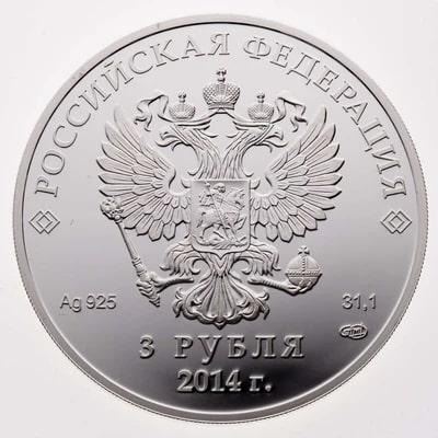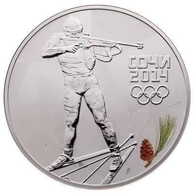 RCM 2014 RUSSIA Sochi 3 Roubles Sterling Silver Coin - Biathlon