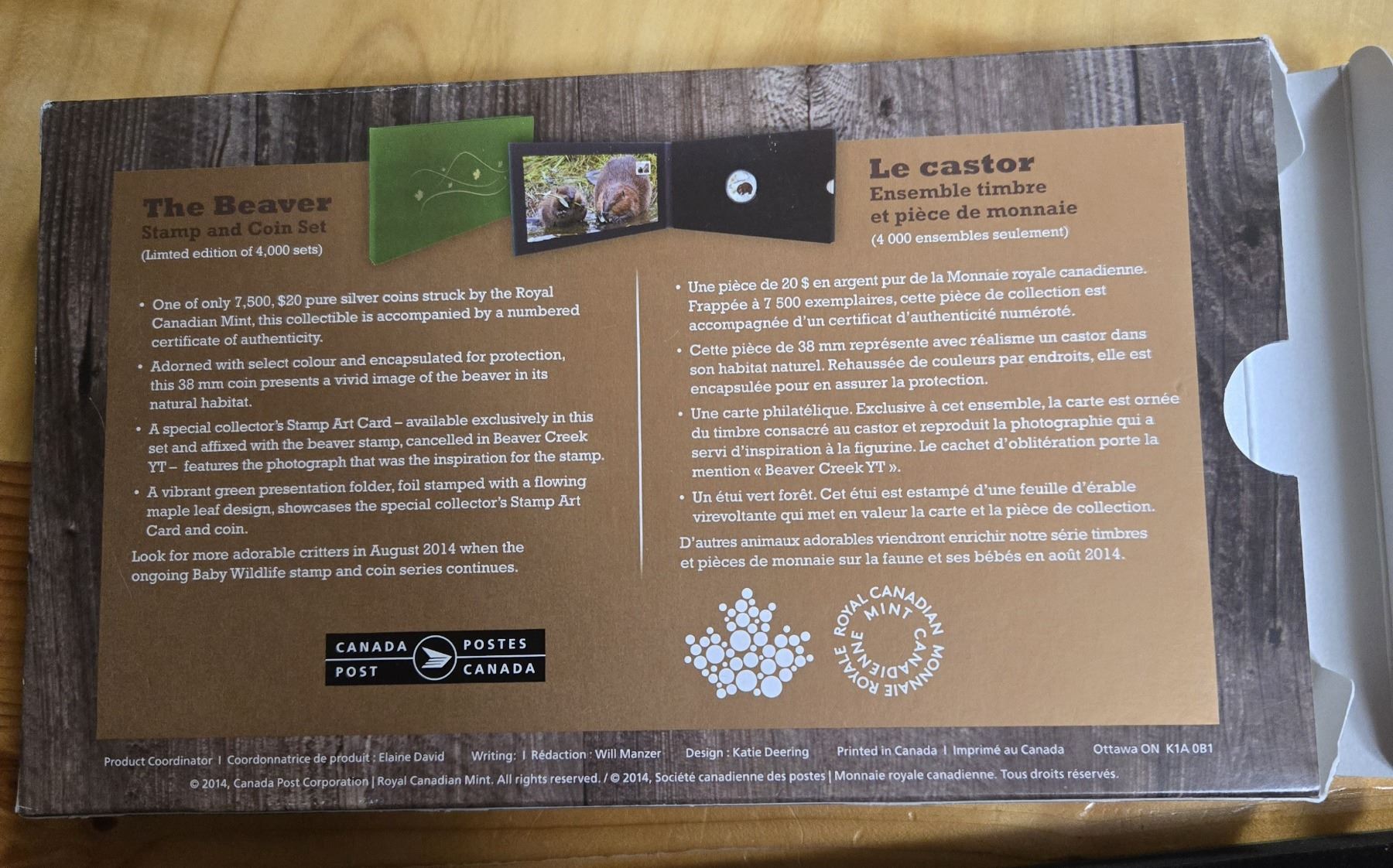 RCM 2014 “The Beaver” Stamp and Coin Set. One of only 7,500 minted. Uncirculated.