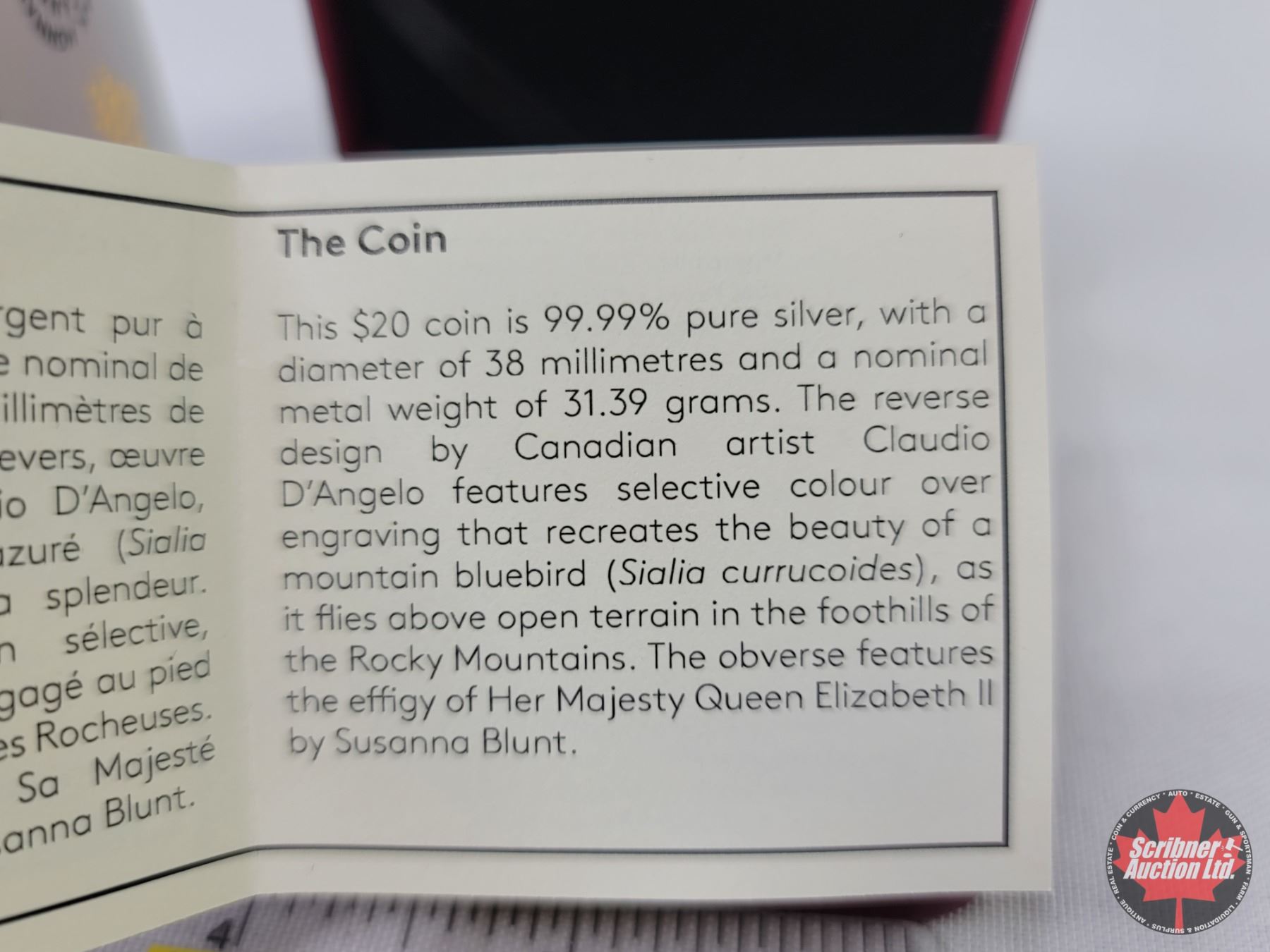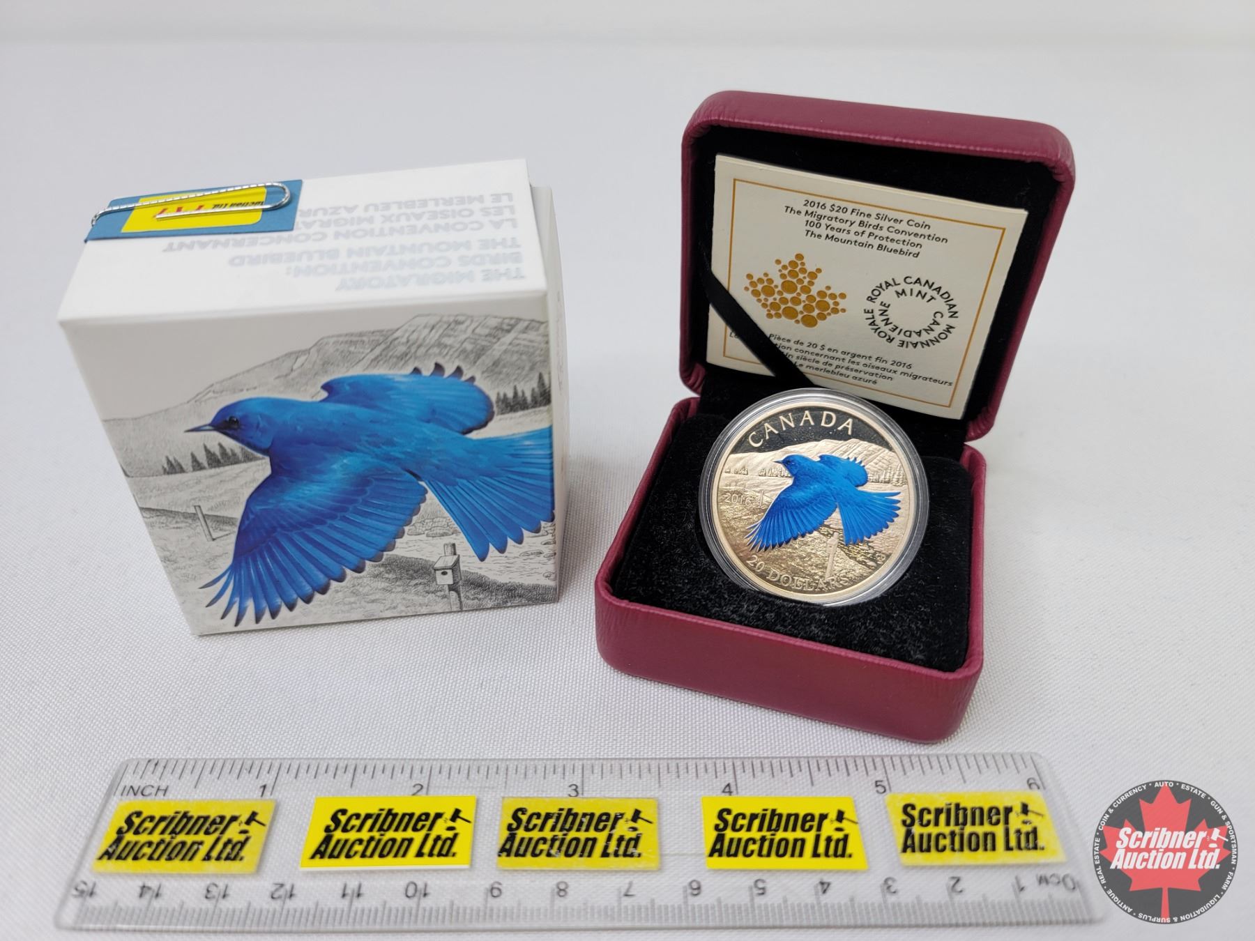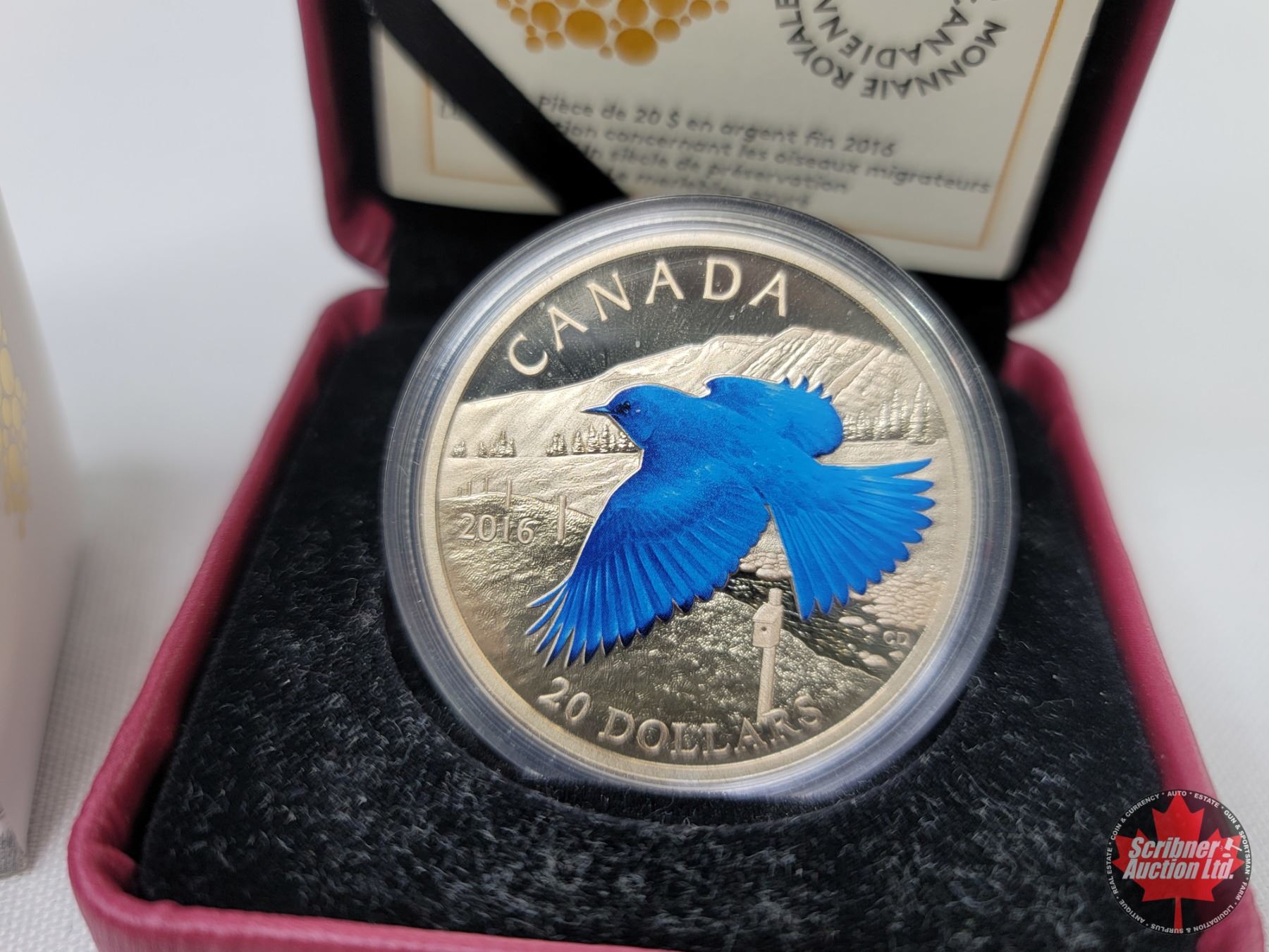 RCM 2016 $20 Fine Silver Coin ~ The Migratory Birds Convention : 100 Years of Protection ~ The Mountain Bluebird (99.99) (SEE PICS!)