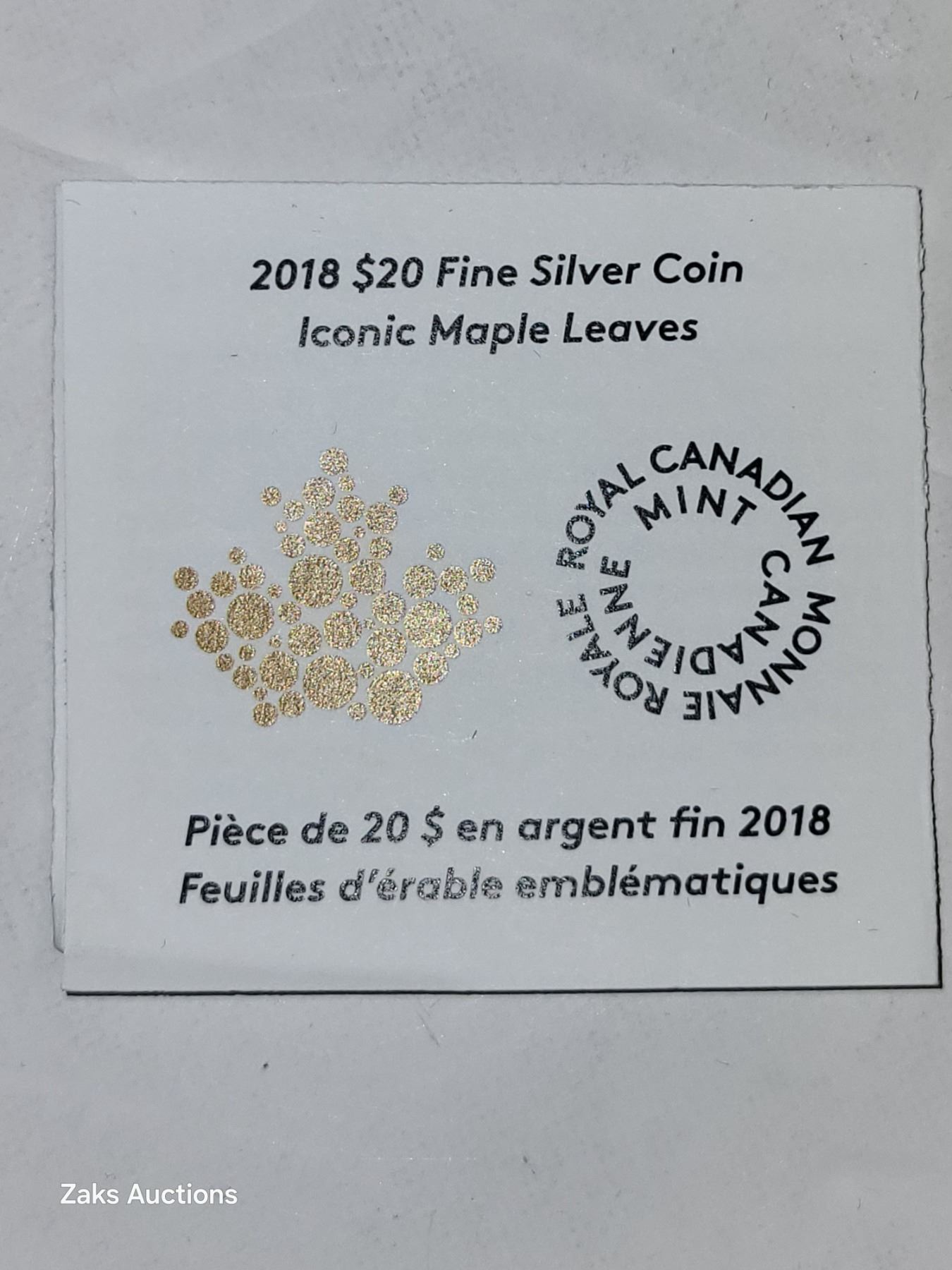 RCM 2018 Iconic Maple Leafs $20 Silver Dollar