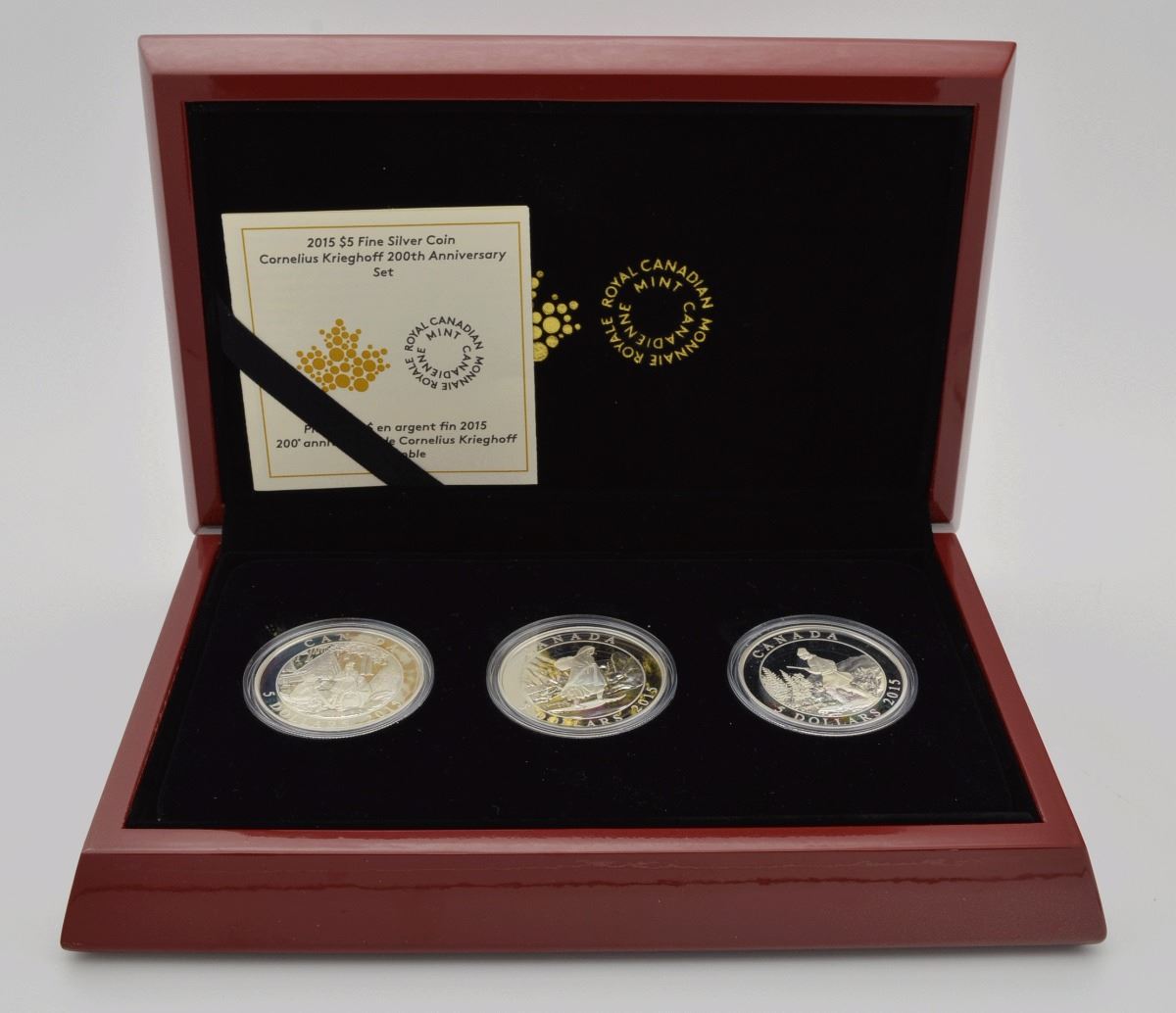 2015 5$ Fine Silver 3 Coin Set. Artwork by Cornelius Krieghoff