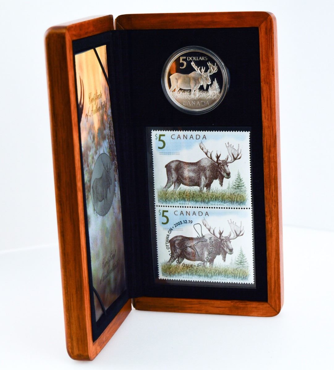2004 5$ Fine Silver coin and Stamp Set: The Majestic Moose