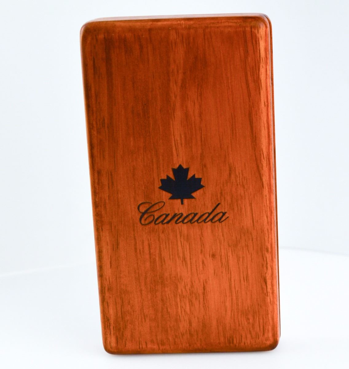 The coin showcases a Moose in Canada's wilderness. The coin comes encapsulated and presented in a wooden case. It is protected by a sleeve which pictures a moose. It's accompanied by a booklet of authenticity.