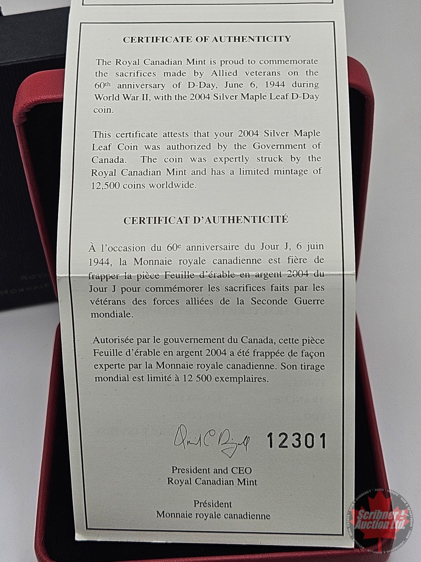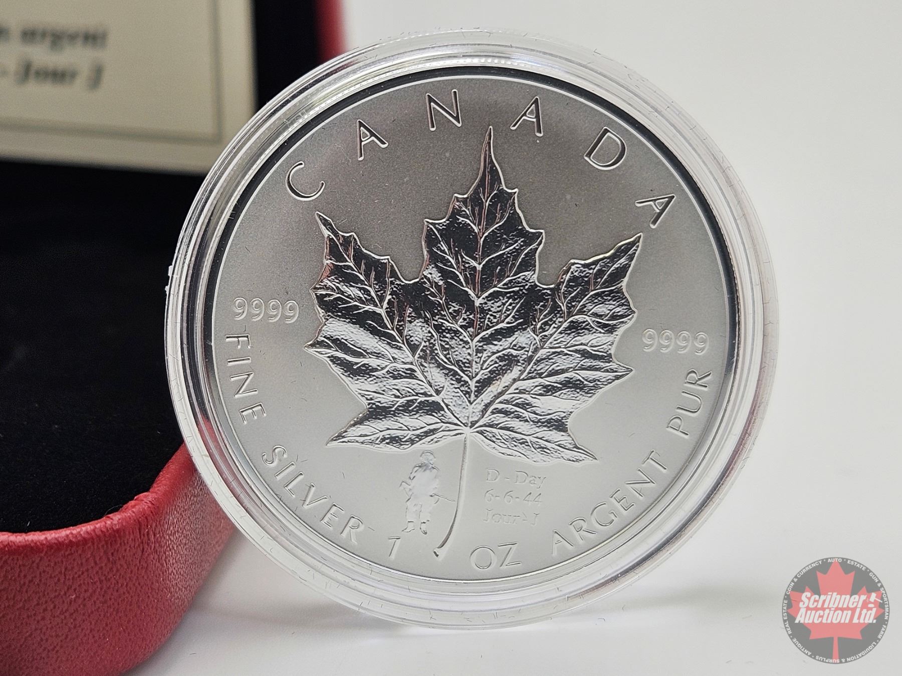 RCM Canada 2004 Maple Leaf D-Day Five Dollar 1oz Fine Silver Coin (COA #12301)