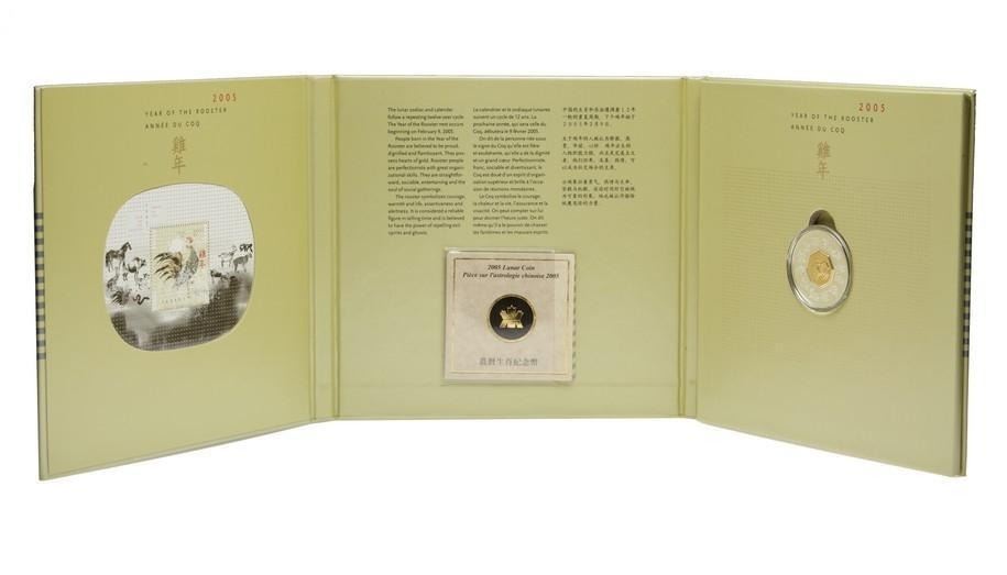 RCM & Canada Post 2005 Year of The Rooster Stamp & Precious Coin Set -925 Sterling Silver w/ 23kt G.P. Cameo, Stamp Sheet, Album, Limited Edition-5054