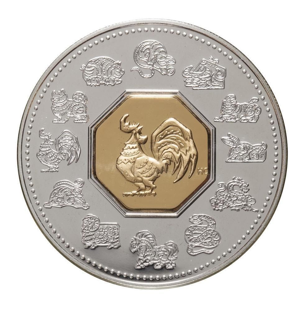 RCM & Canada Post 2005 Year of The Rooster Stamp & Precious Coin Set -925 Sterling Silver w/ 23kt G.P. Cameo, Stamp Sheet, Album, Limited Edition