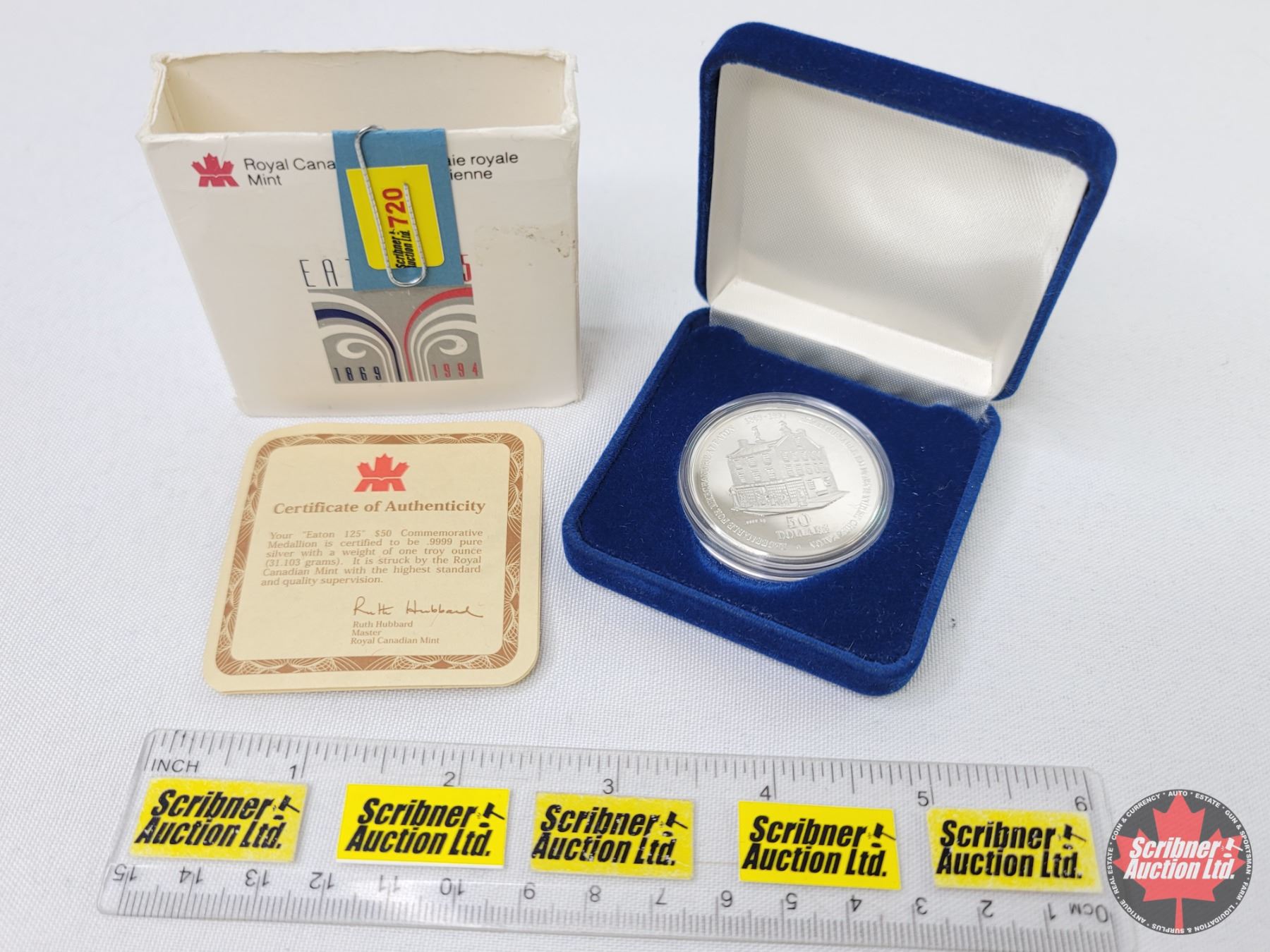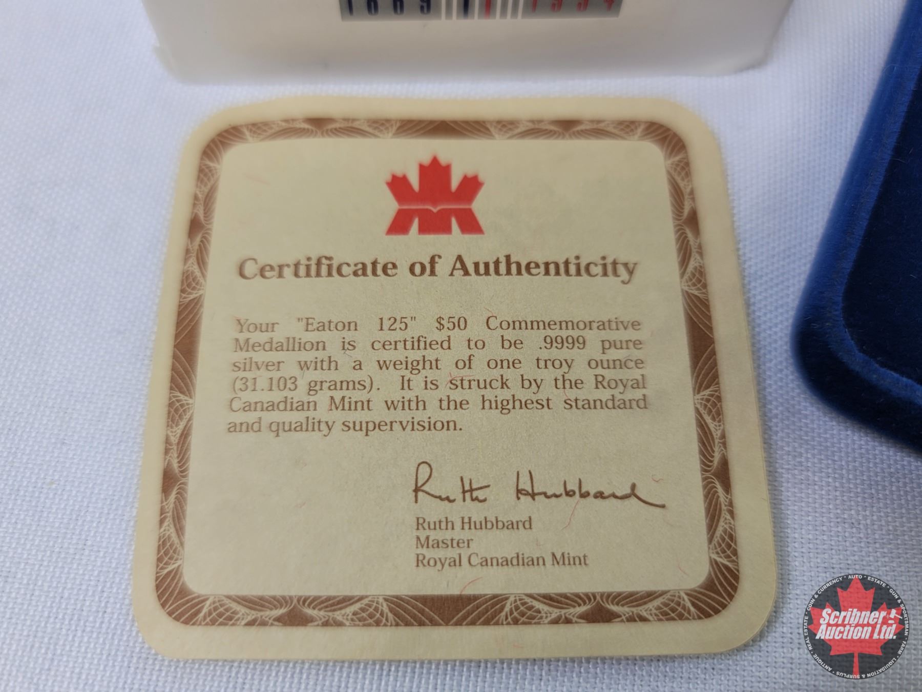 RCM EATON 125 $50 Commemorative Medallion "Redeemable … " (.9999 Pure Silver - One Troy Ounce) (SEE PICS!)