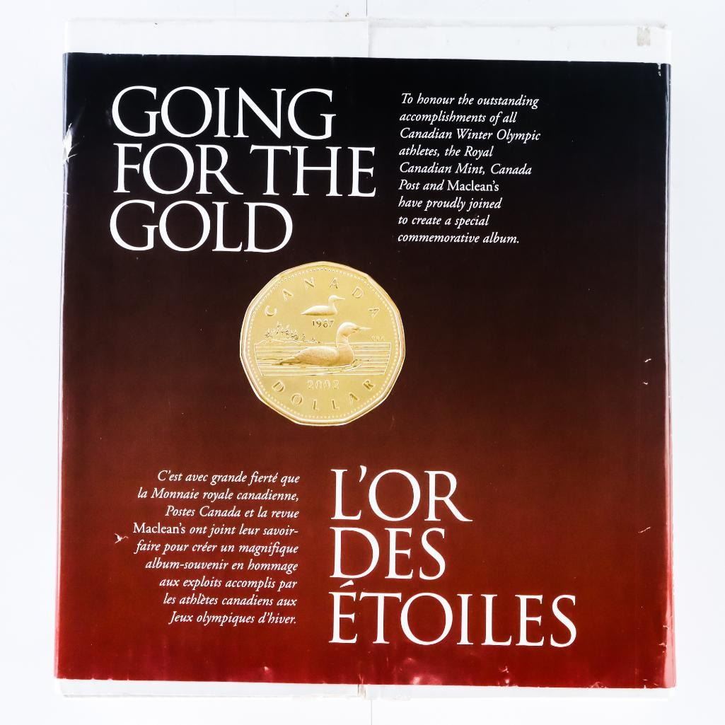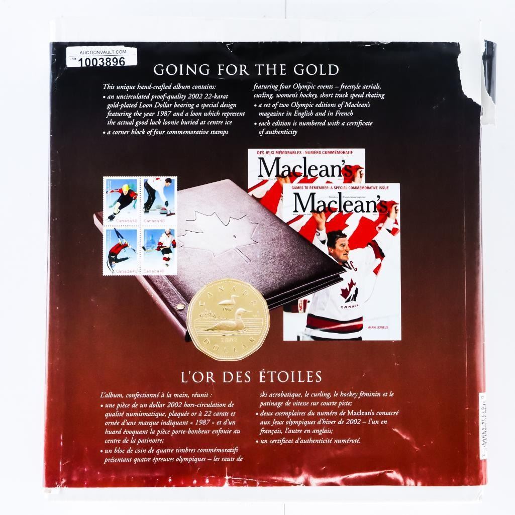 RCM Going for The Gold -Collector Album -22karat gold plated 1987 Loon Dollar Coin,Corner Block of Stamps, Leather Bound Album.-1003896