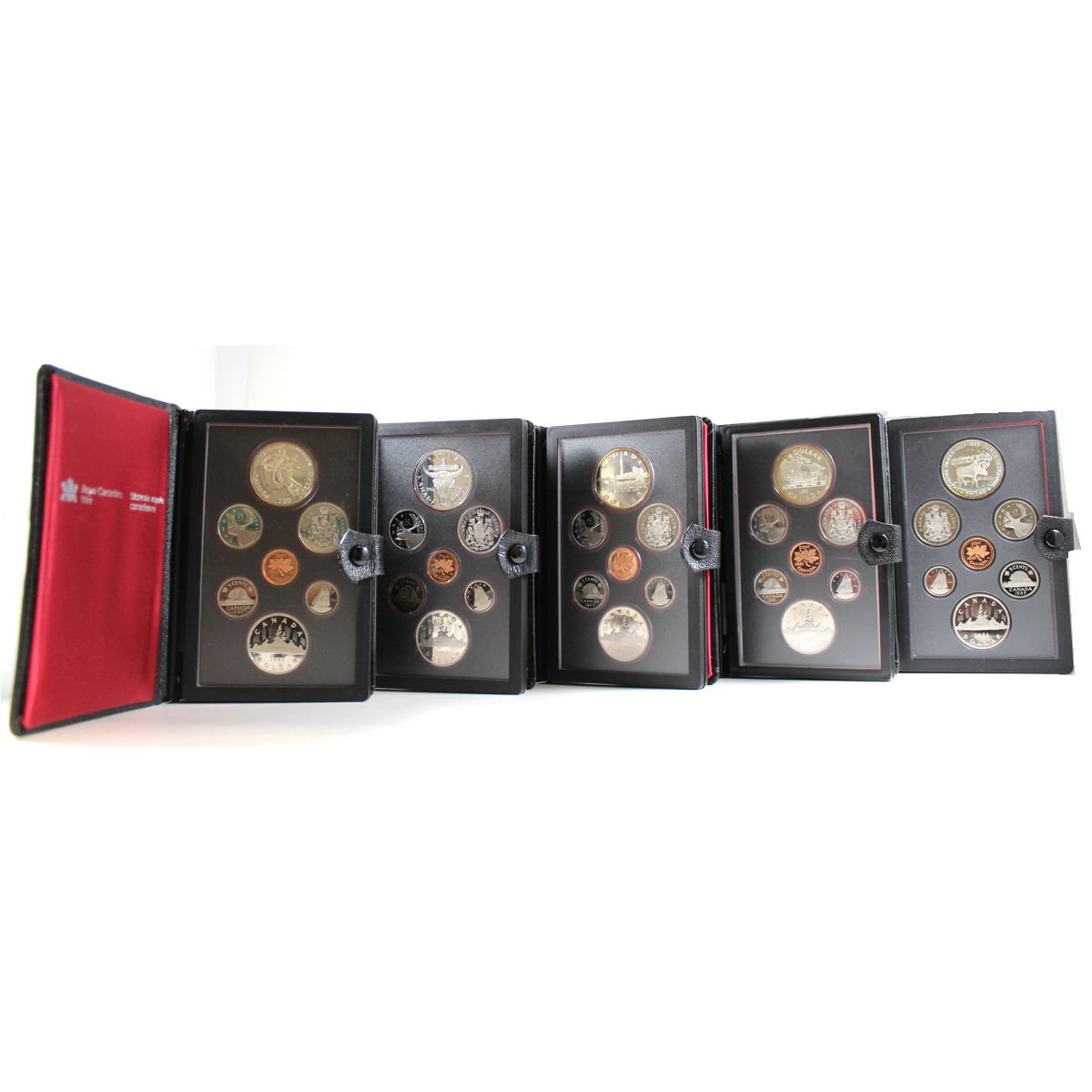 RCM Issue: 1981-1985 Canada Proof Double Dollar Sets. You will receive one of each Set Issued from 1981 to 1985. Please note coins may be toned and minor wear on packaging. 5 sets.