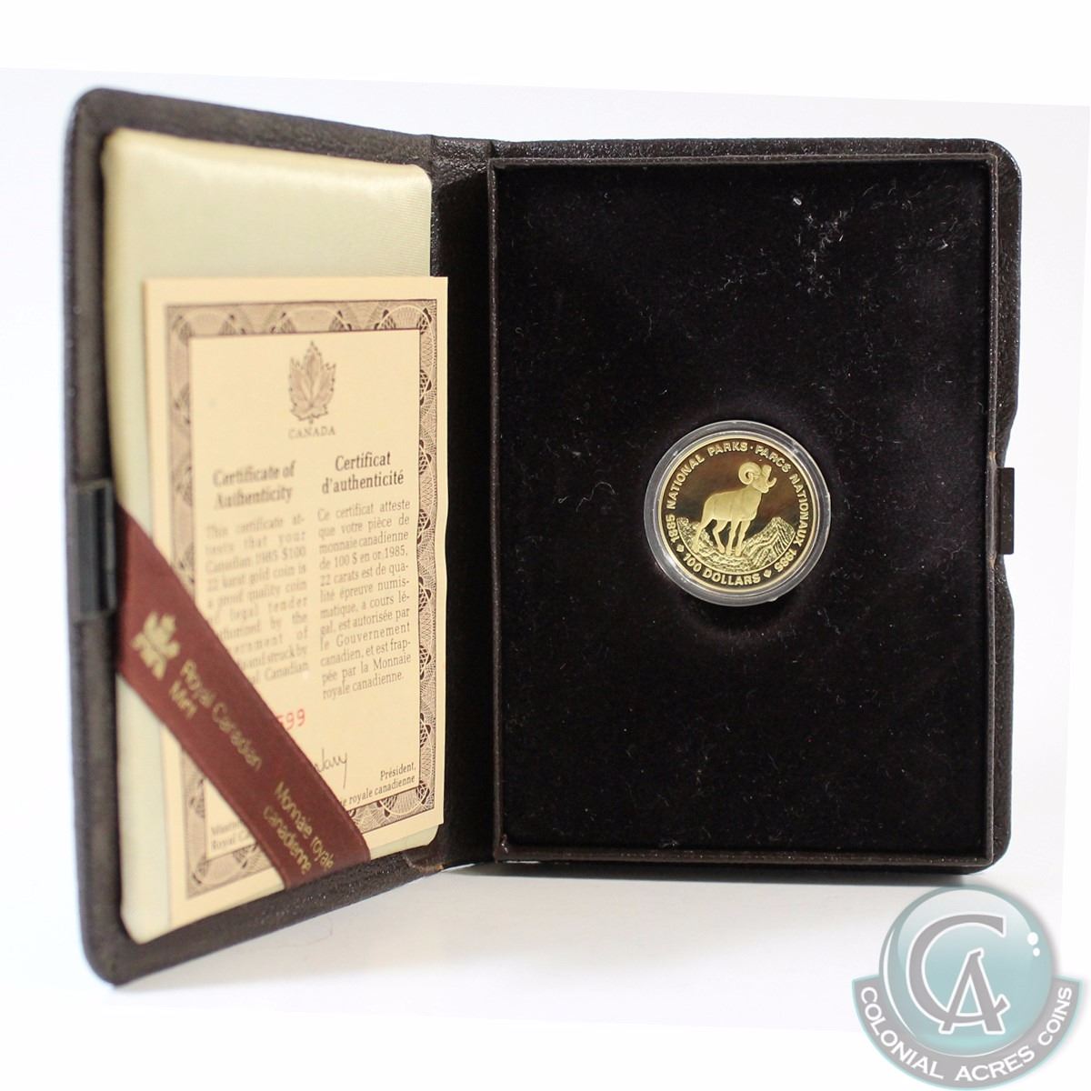 RCM Issue: 1985 Canada $100 National Parks 22k Gold Coin in Original Display Case with COA.
