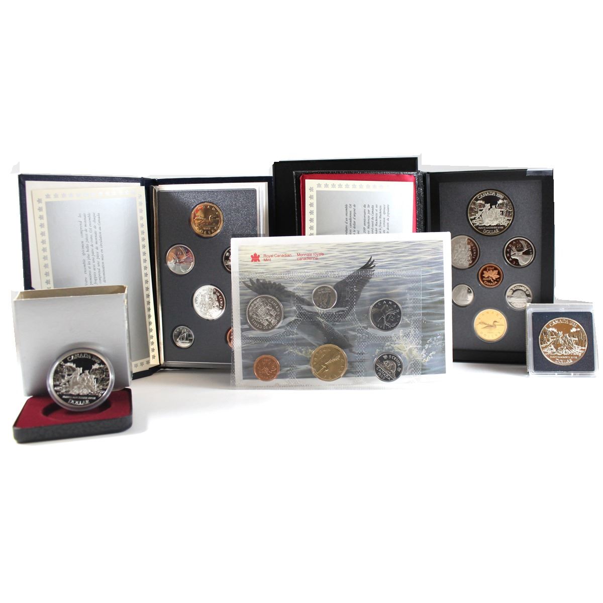 RCM Issue: 1989 Canada RCM Estate Lot. You will receive the following items Issued in 1989; Specimen 6-coin Set, Uncirculated Proof Like Set, Proof Double Dollar set, Proof Dollar, and BU Dollar. All items come in original mint Issue packaging. Please note coins may have toning. 5pcs.