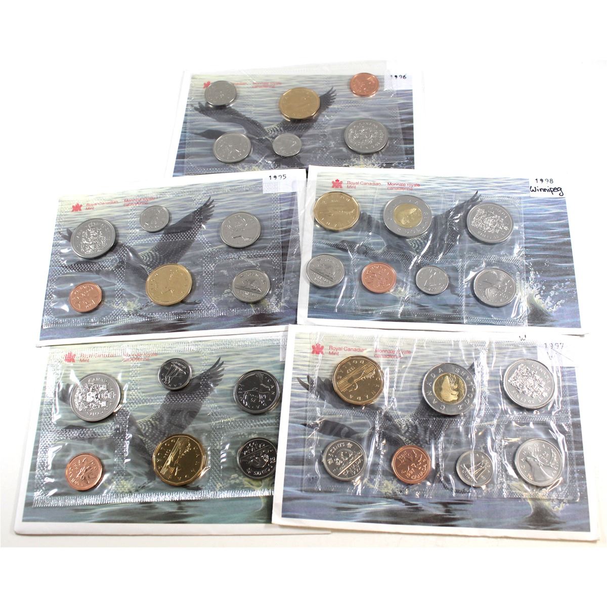 RCM Issue: 1994-1998 Canada Uncirculated Proof Like sets. You will receive the 1994, 1995, 1996, 1997W and 1998W. 5 sets