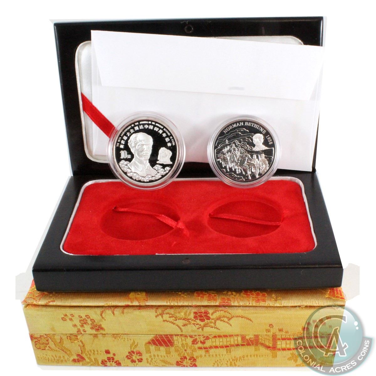 RCM Issue: 1998 Canada $5 60th Anniversary of Norman Bethune's Arrival in China Coin 2-coin Set. As is typical for this set, the outer box is lightly worn (TAX Exempt)