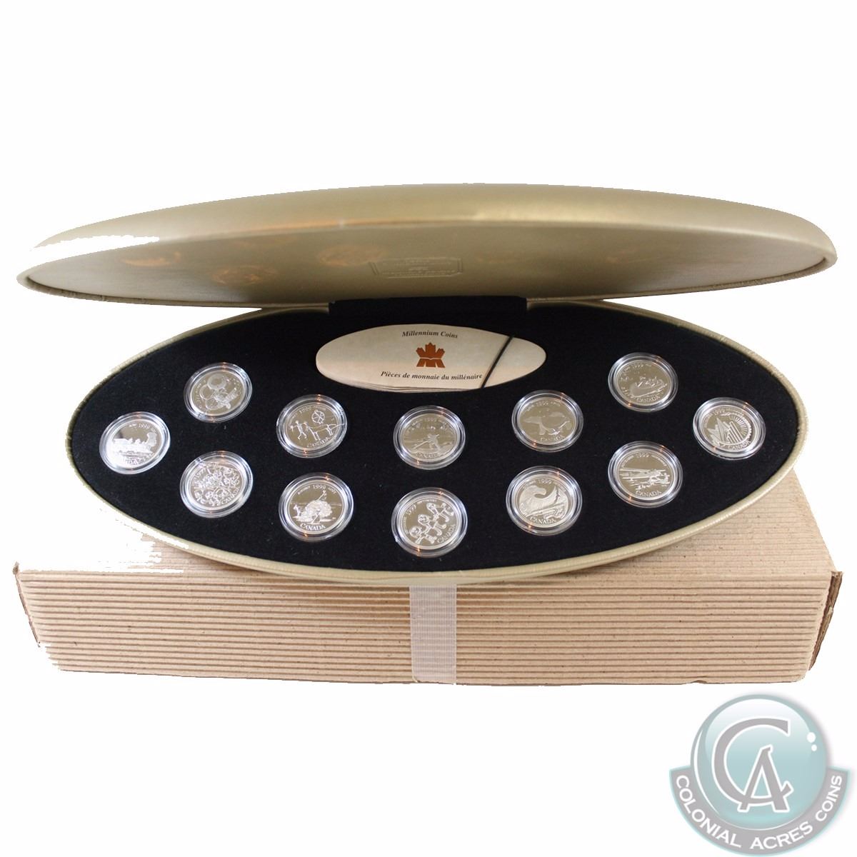 RCM Issue: 1999 Canada Millennium 12-Coin 25-Cent Proof Set in all Original Packaging (Some capsules may be cracked or scuffed)