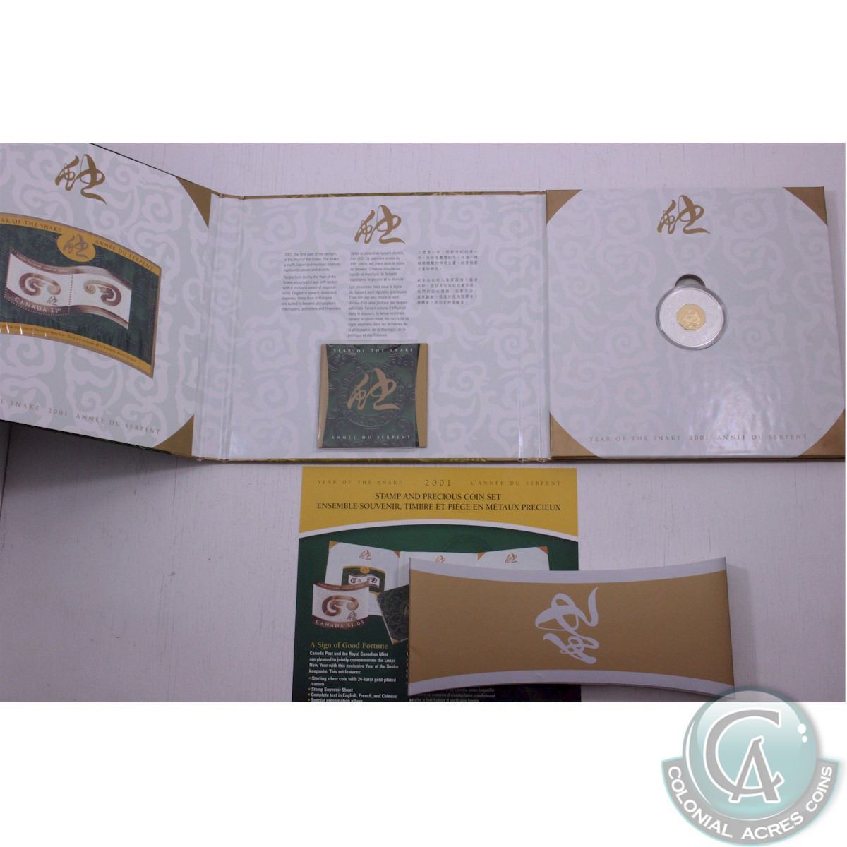RCM Issue: 2001 Canada $15 Year of the Snake Silver Coin and Stamp Set with all original packaging