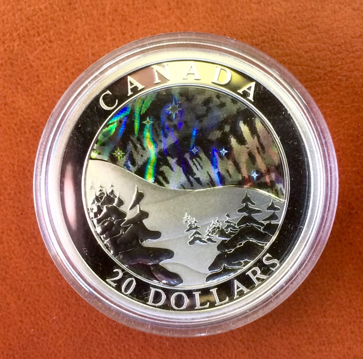 RCM Issue: 2003 20$ Fine Silver Natural Wonders-The Northern Lights, holgram Coin, No Tax C.O.A & Box