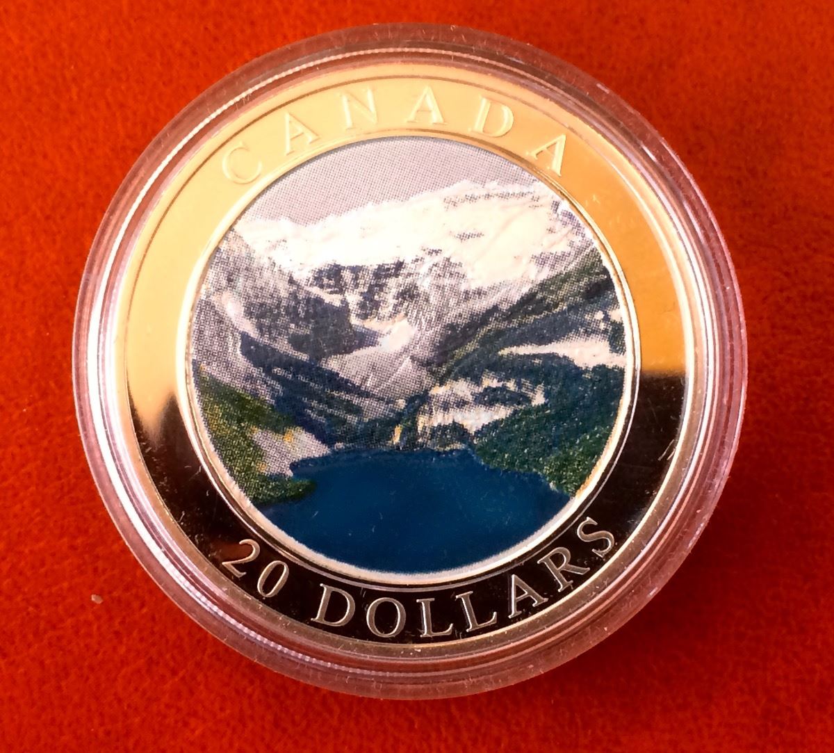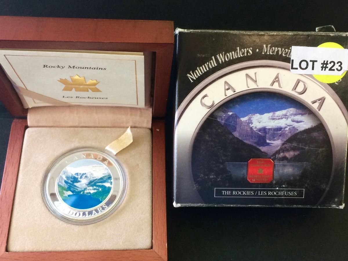 RCM Issue: 2003 20$ Fine Silver Natural Wonders-The Rockies, holgram Coin, No Tax C.O.A & Box