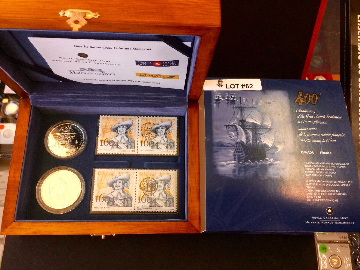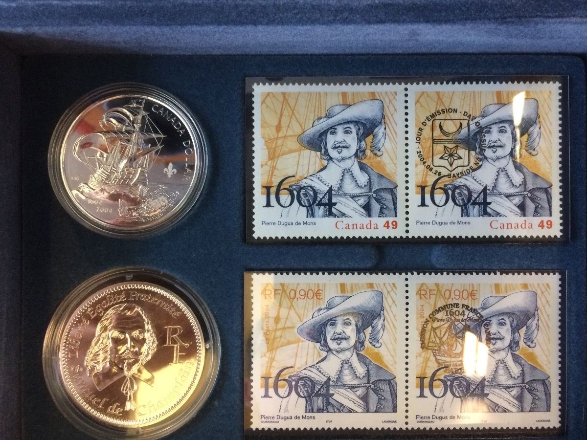 RCM Issue: 2004 5$ Sterling Silver Ile Sainte-Croix Coins & Stamp & C.O.A & Box