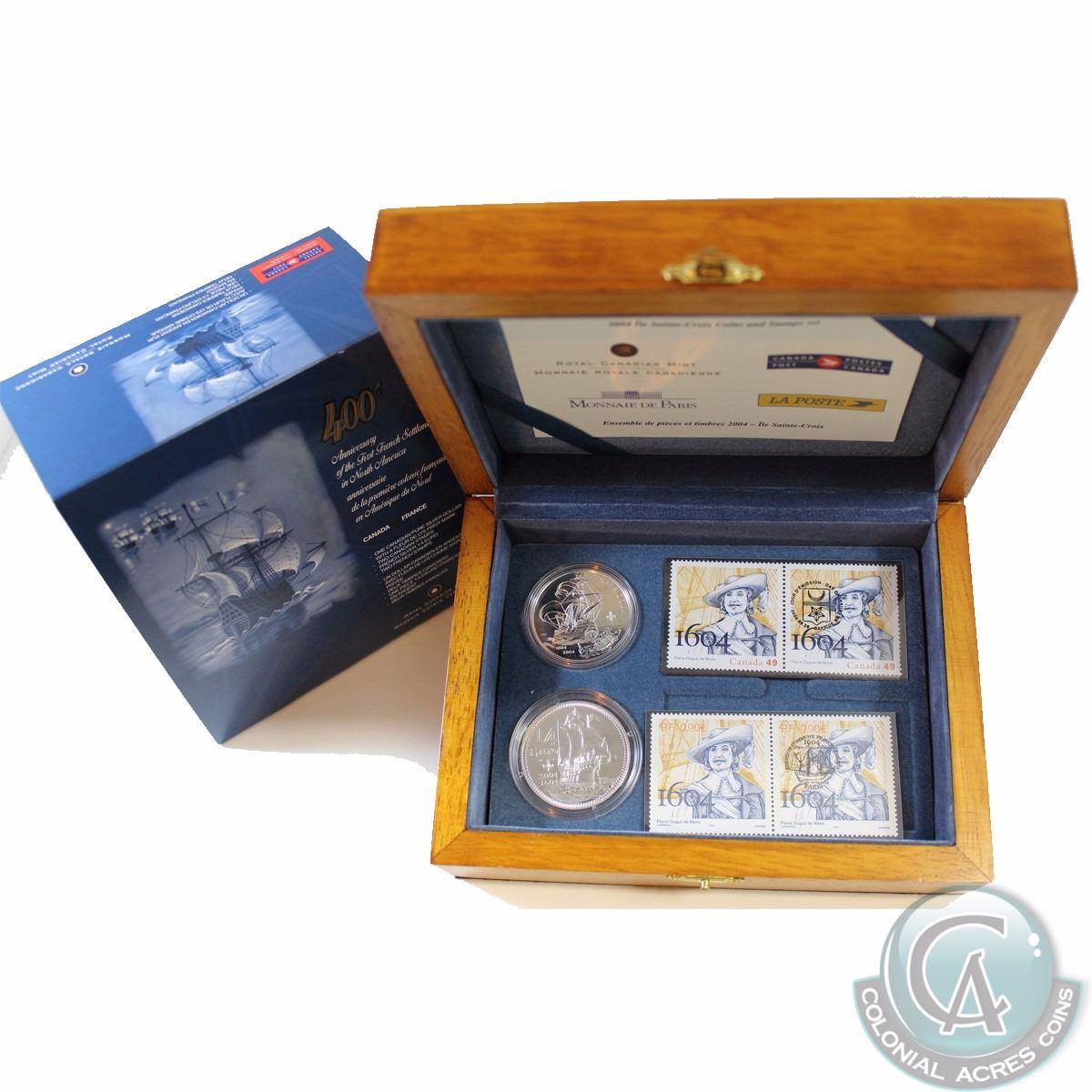 RCM Issue: 2004 Canada Ile Sainte-Croix 2-Coin and Stamp Set (1/4 Euro capsule lightly scratched)